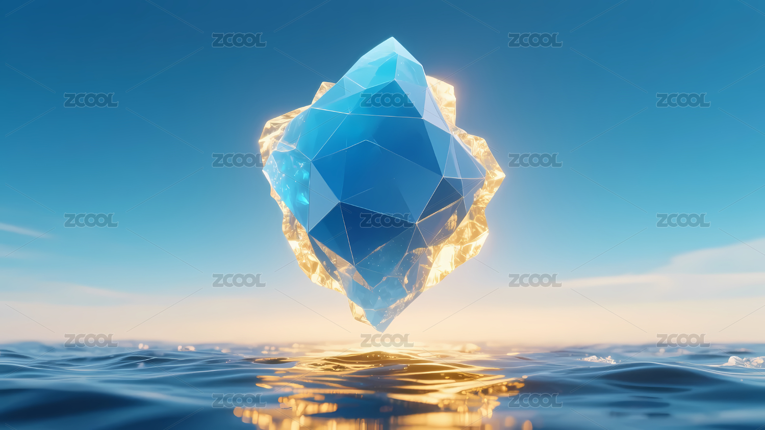 悬浮水面的蓝色晶体