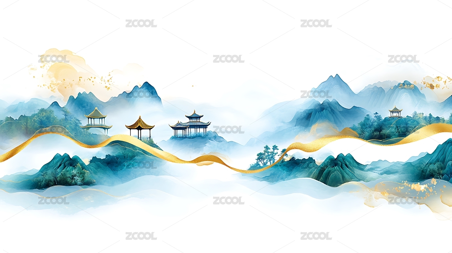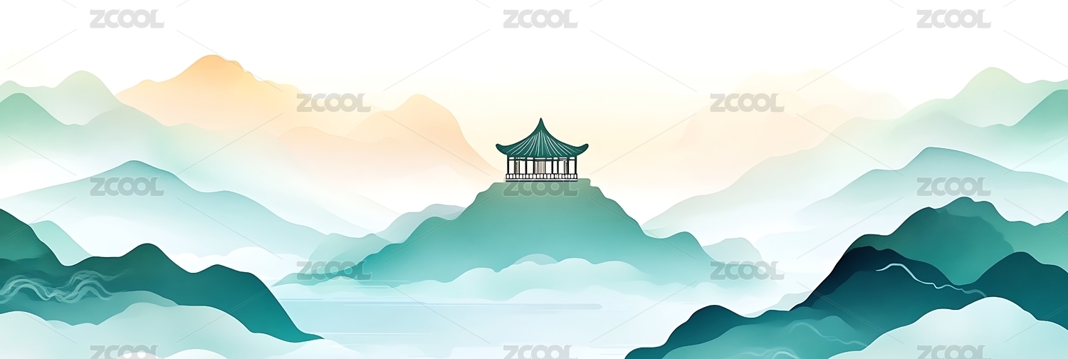 背景,水墨画,山峰,云雾,古建,亭台,楼阁,中国风,山水画,风景画