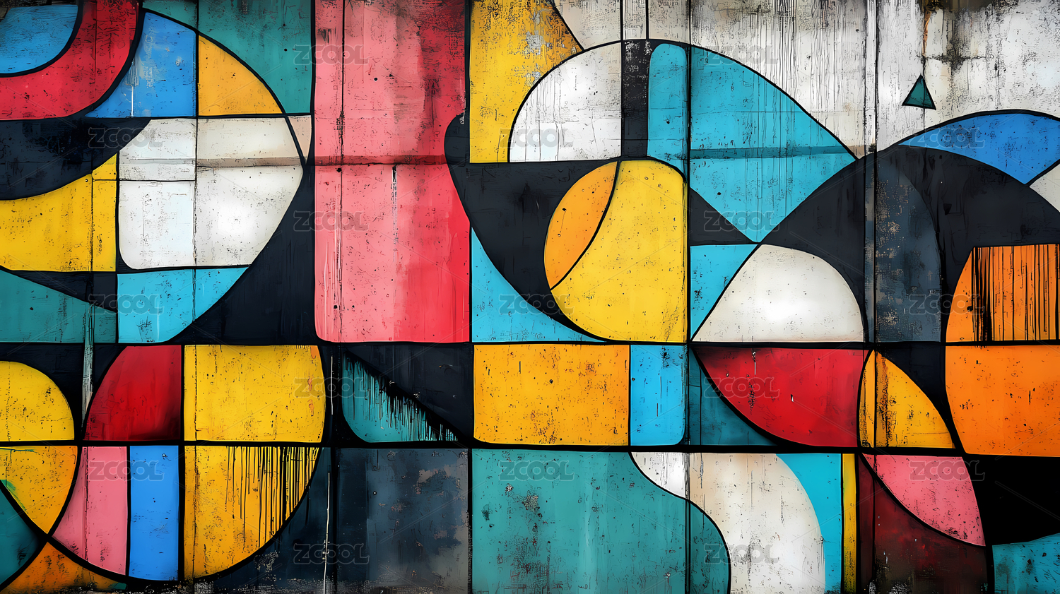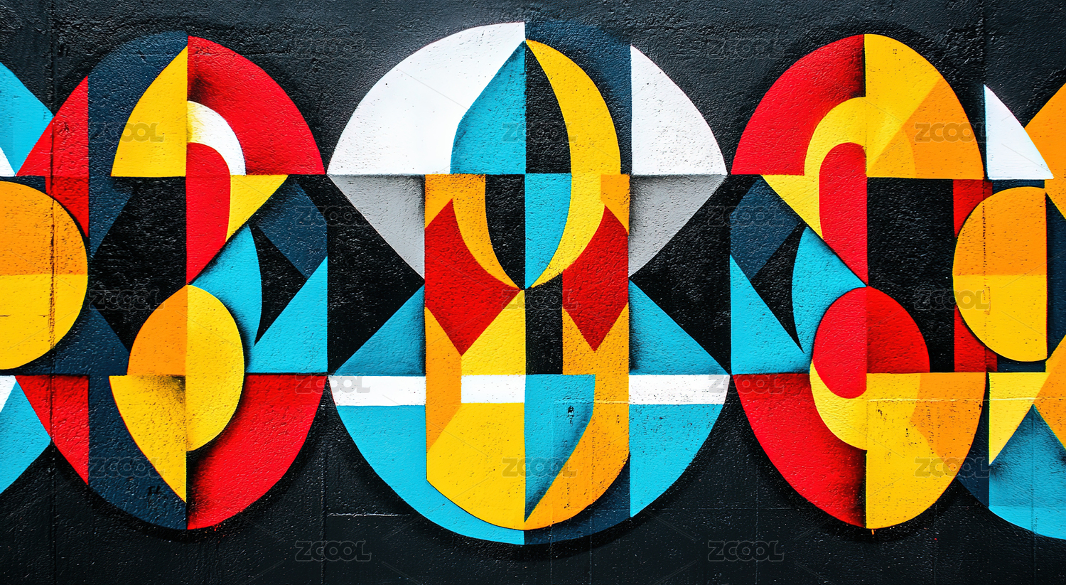 象征,视觉,几何,抽象,艺术,涂鸦,墙绘,色彩,拼接,现代