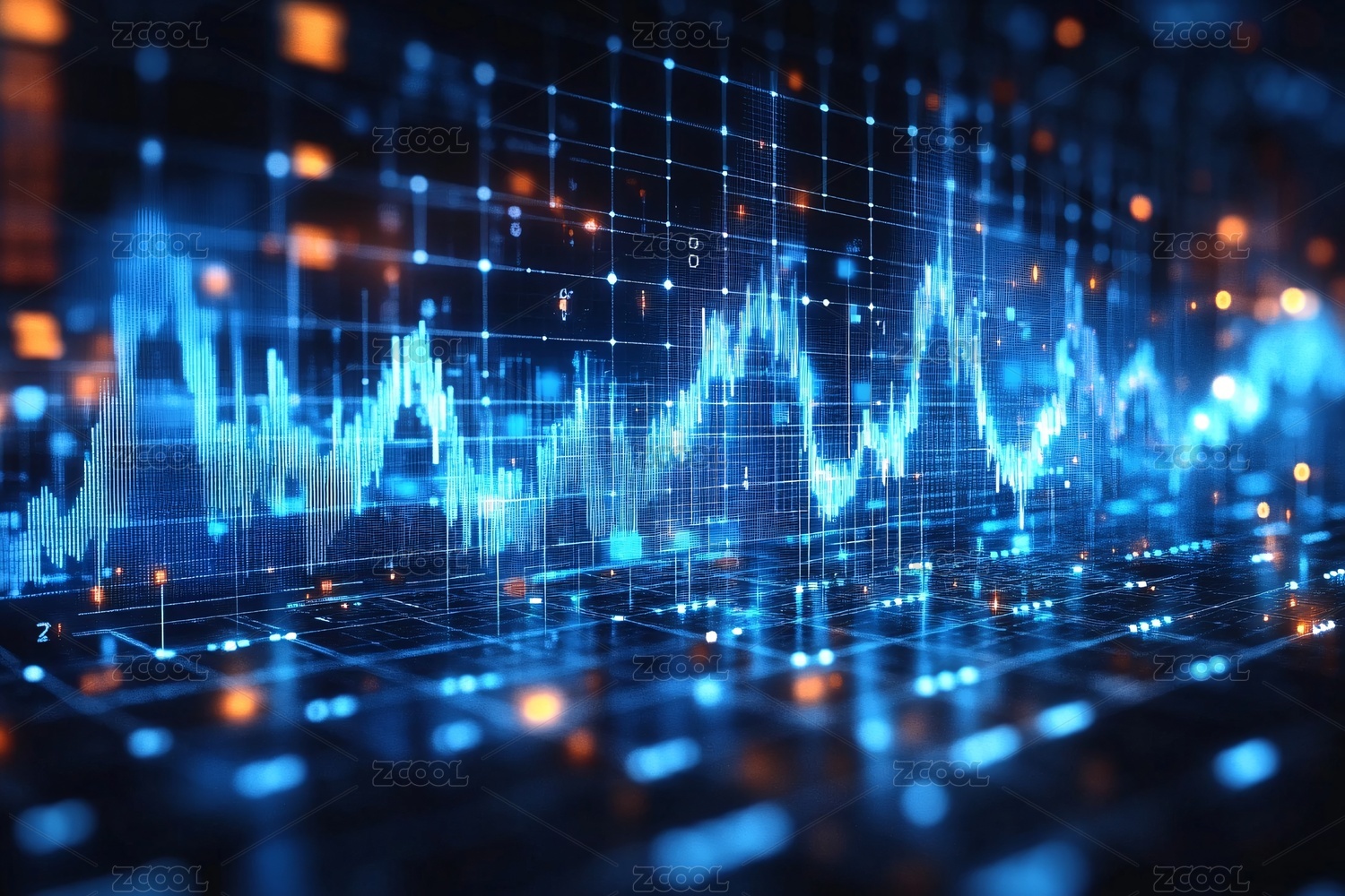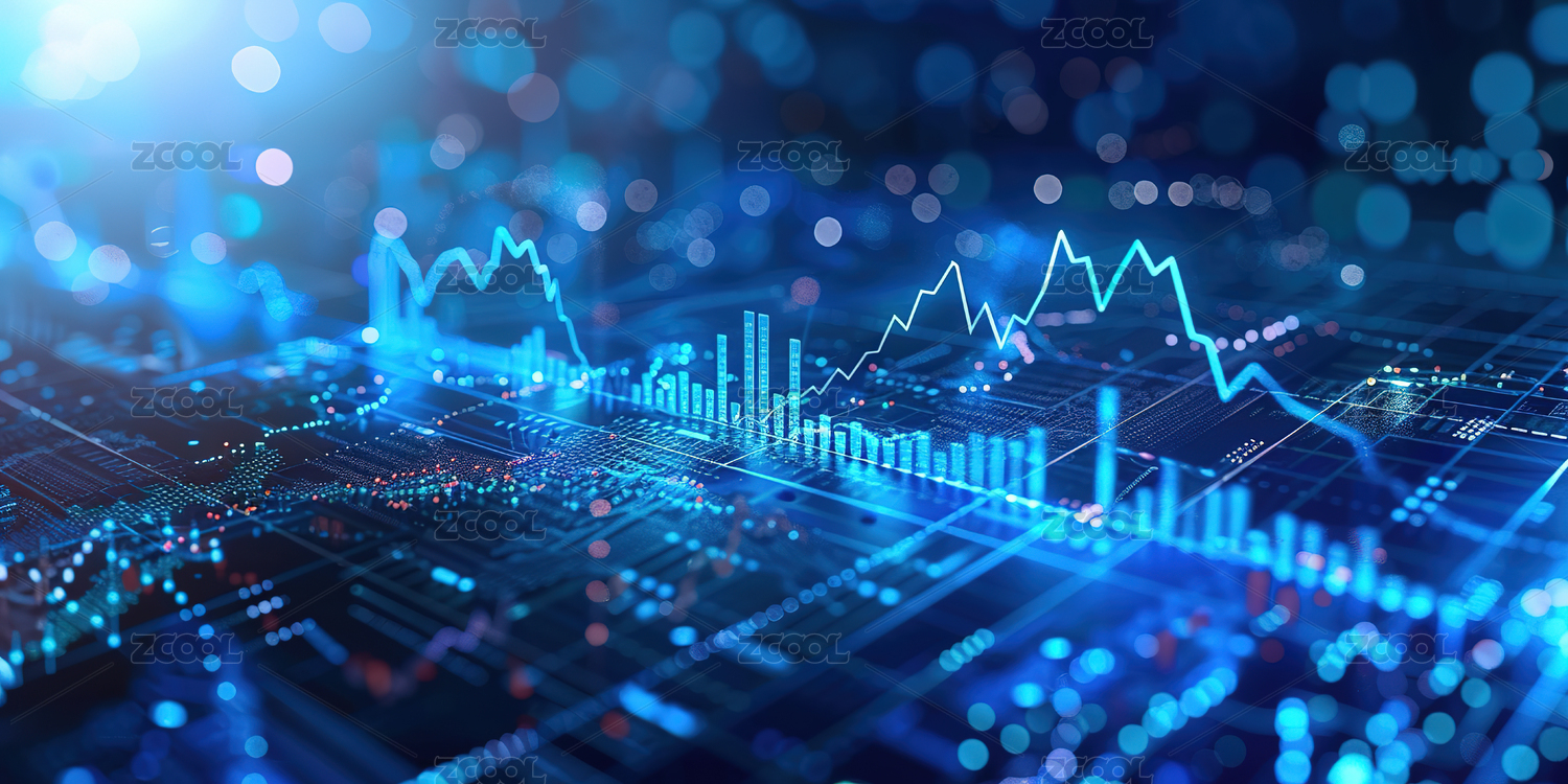 蓝色背景下的股票k线图