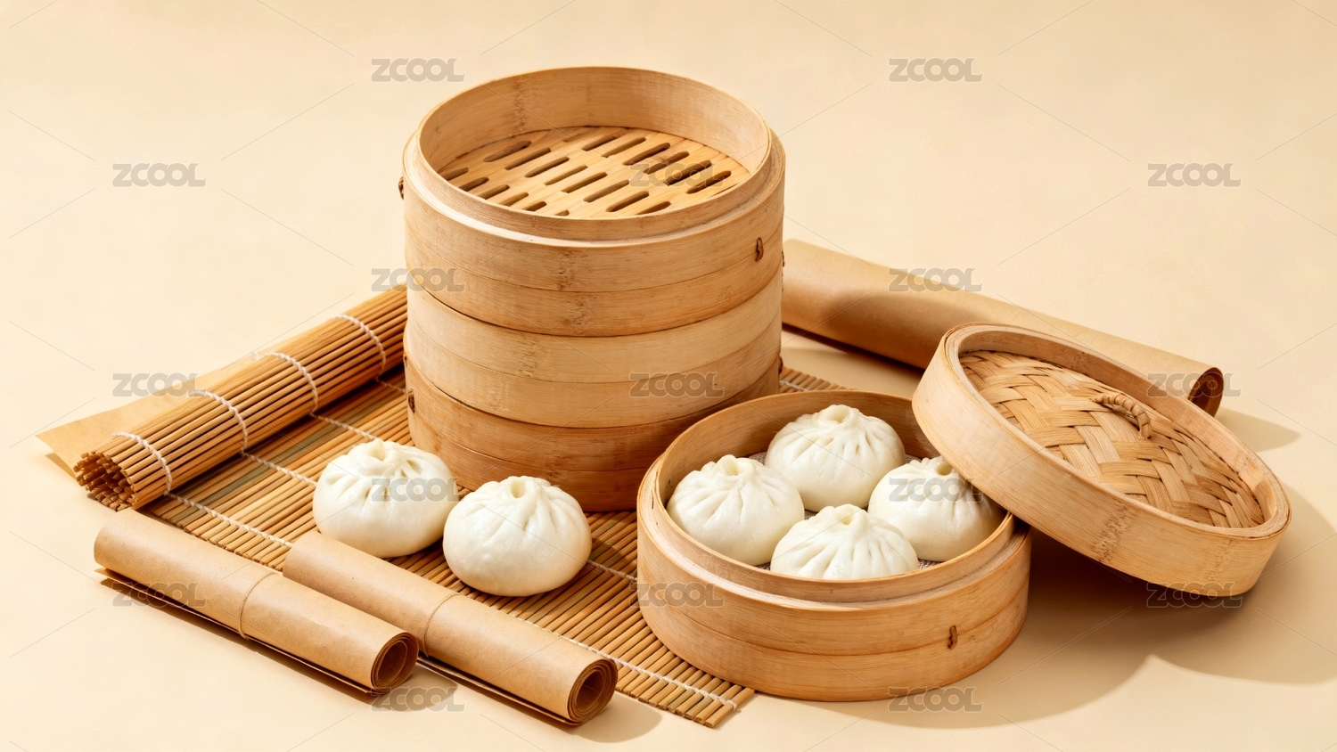 蒸笼质朴感美食展示场景
