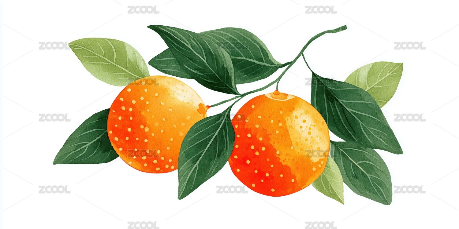 白背景带叶子的成熟的橘子手绘扁平水彩插画