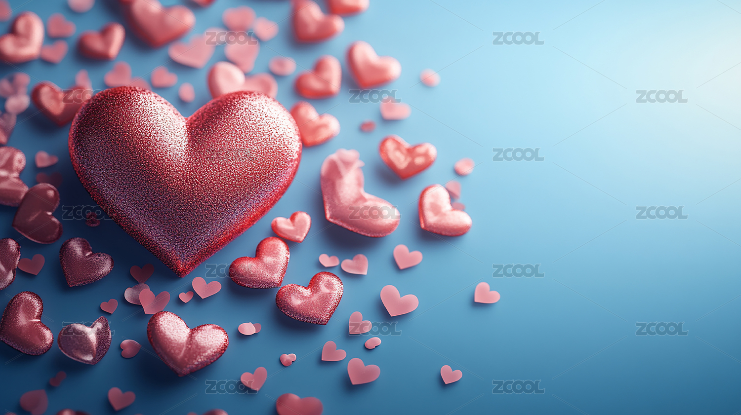 蓝色背景下闪耀的爱心