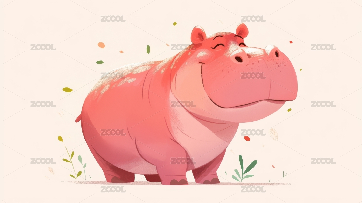 背景,卡通,动物,河马,插画,艺术,可爱,绘图,形象,设计