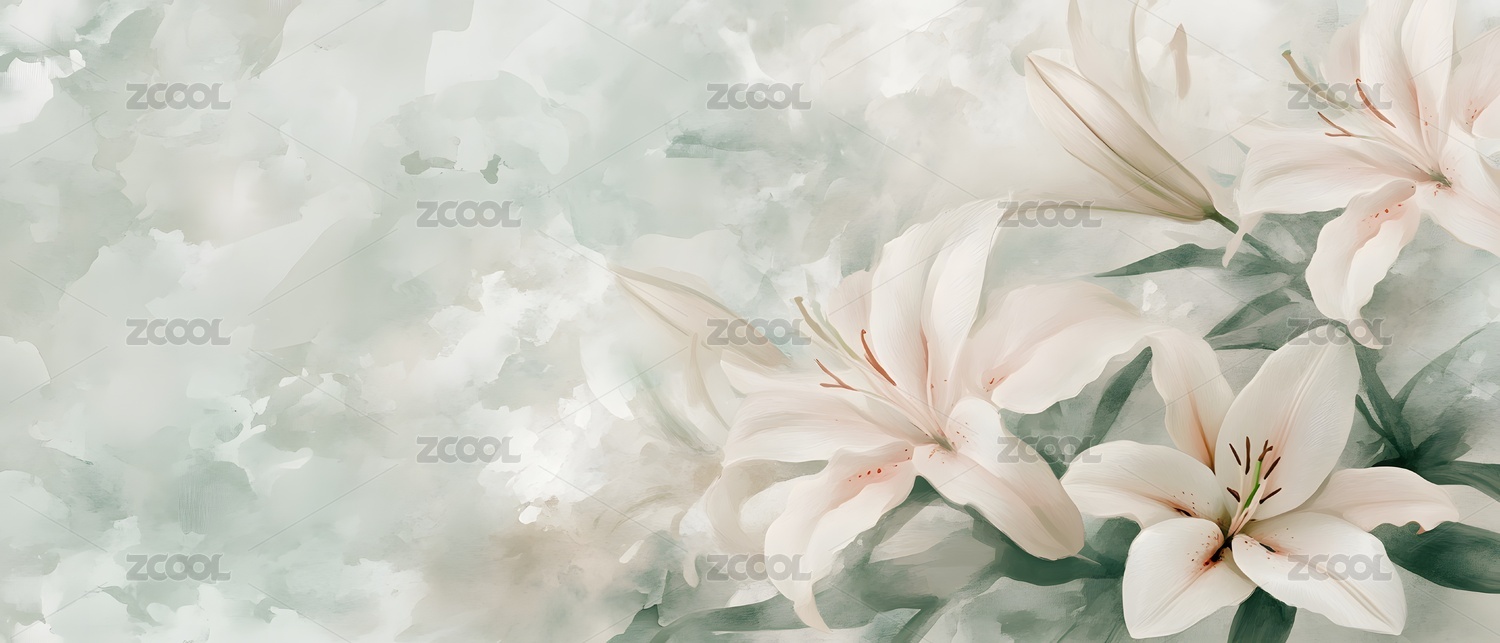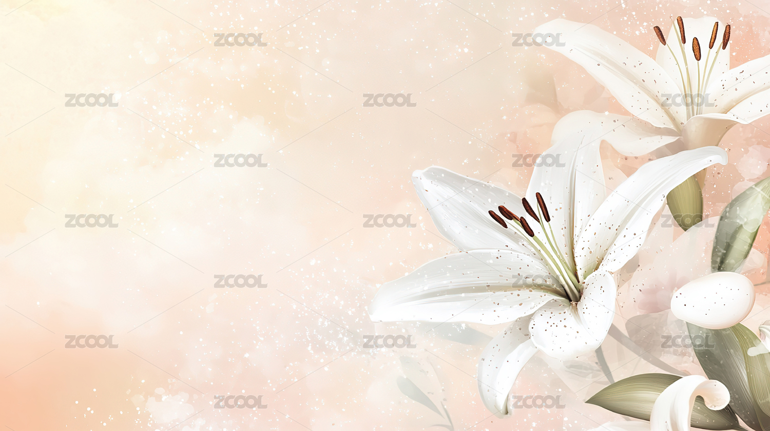 水彩画,艺术,百合花,粉色,花朵,花瓣,花茎,绿叶,植物,水墨