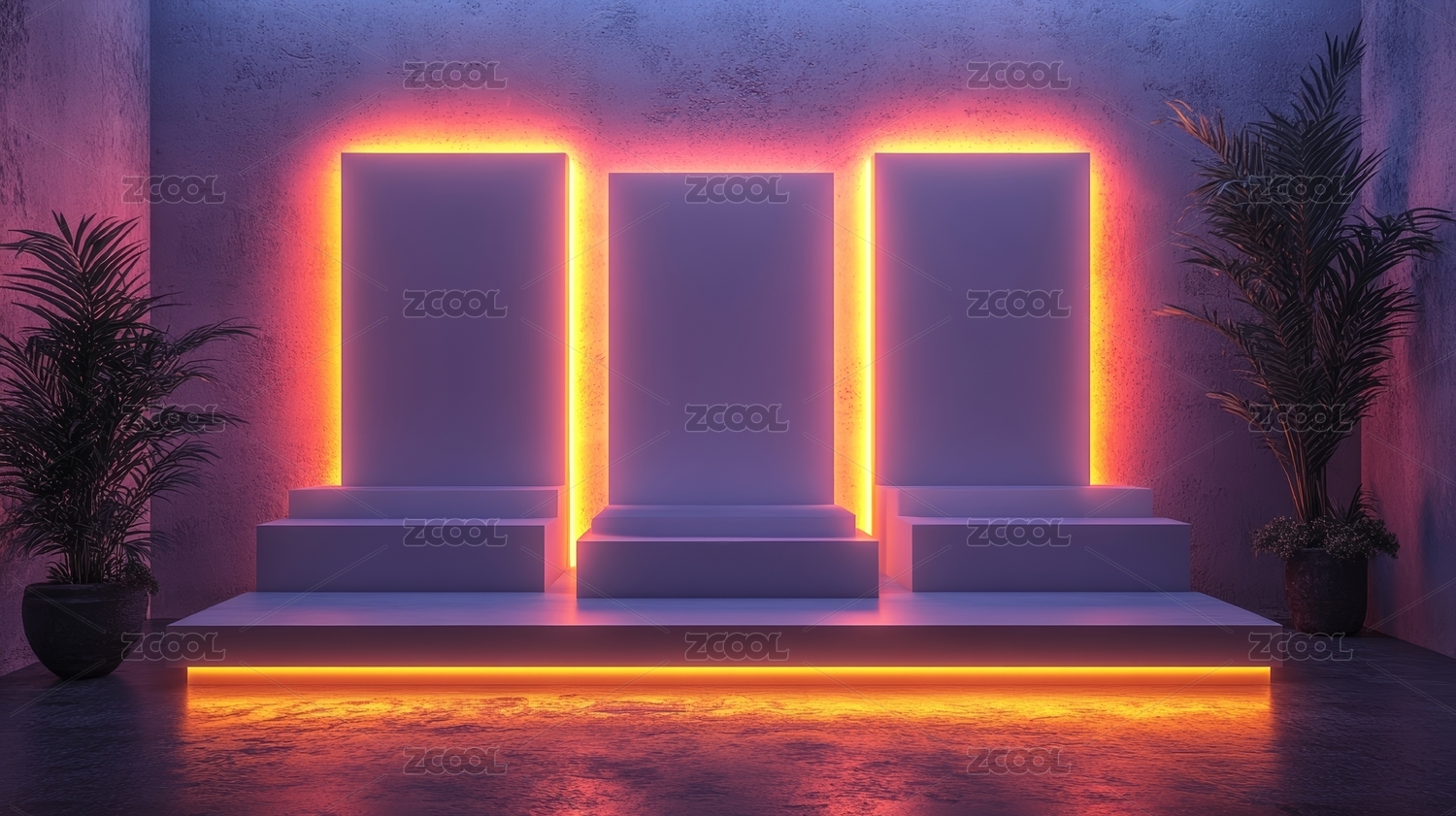 神秘绚丽色彩室内水池植物3D灯带电商展台