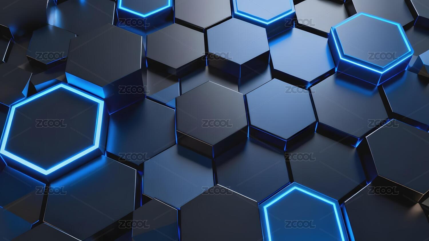 蓝色发光六边形几何图案