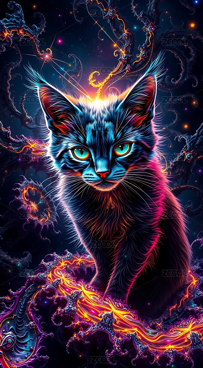 水晶,猫,钻石,点,闪光,抽象,海报,漩涡,宇宙,金