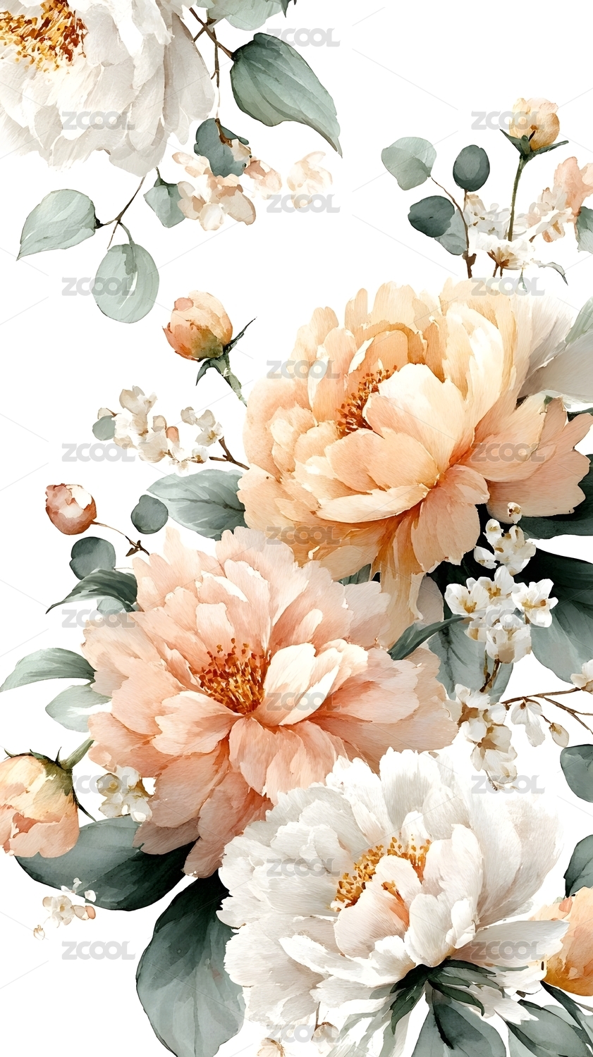 水彩牡丹花