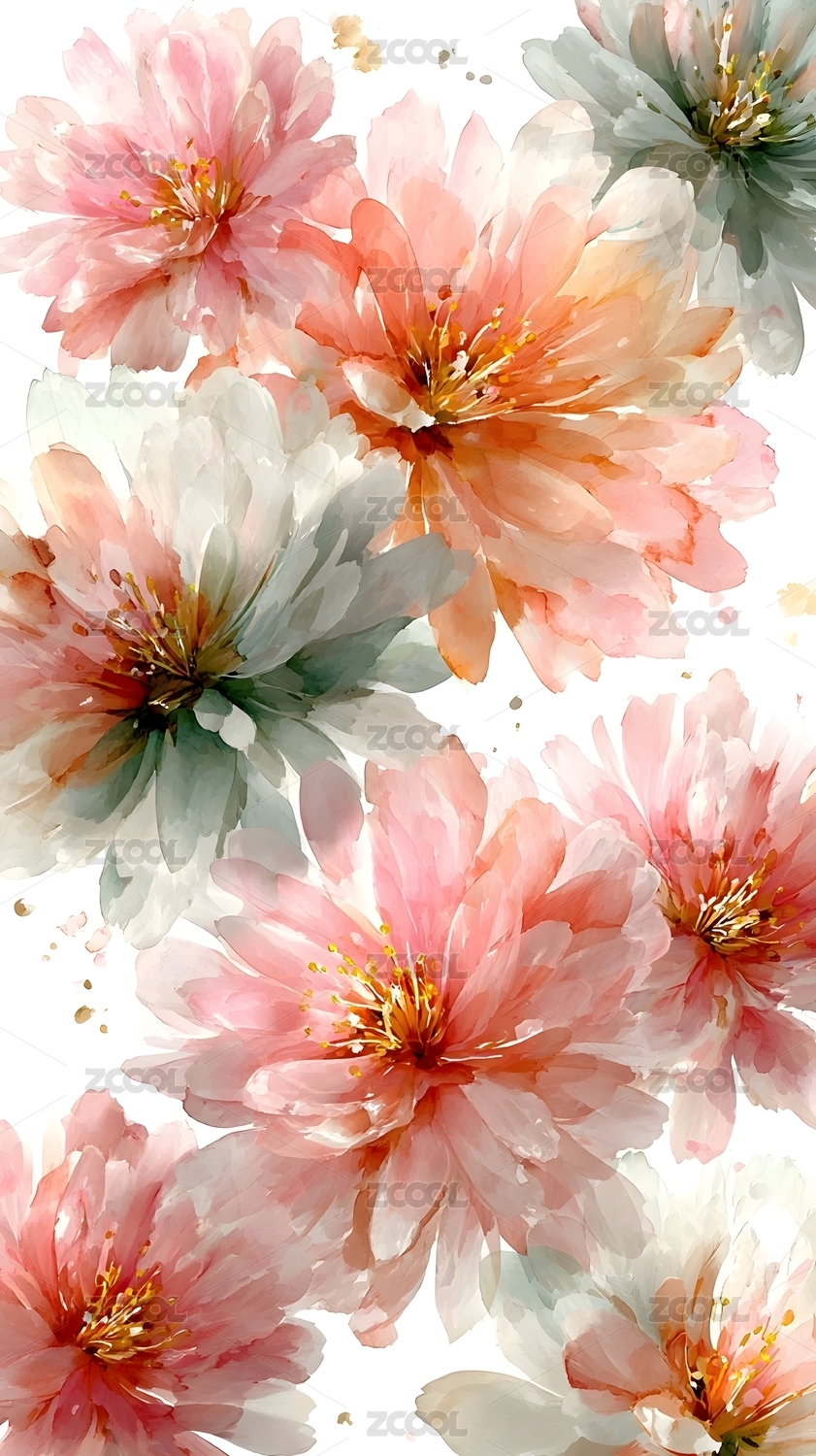 粉色,米色,复古,菊花,水彩,绘画,植物,花卉,艺术,抽象