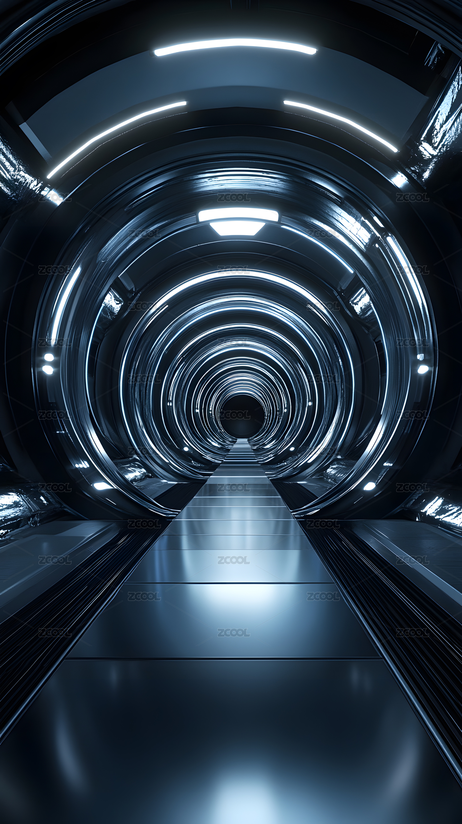 蓝色灯光隧道,未来感十足
