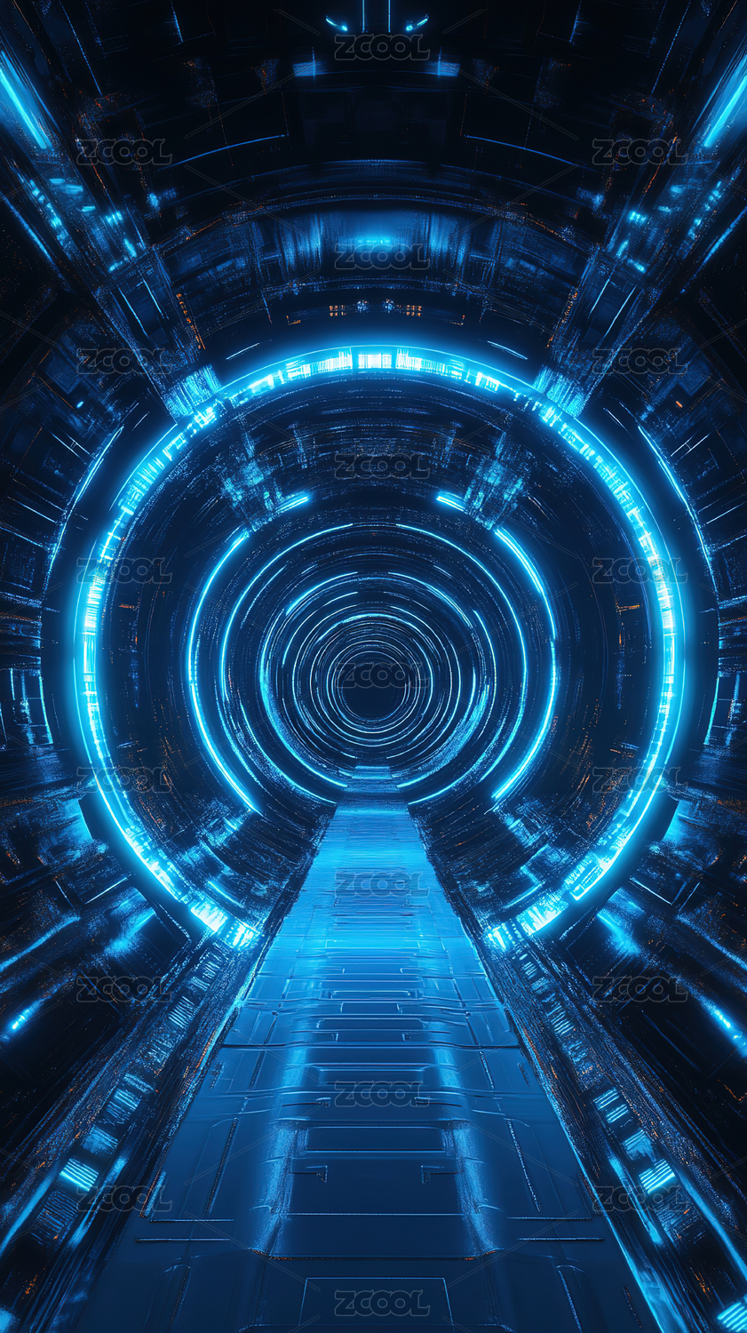 科幻风格蓝色环形隧道