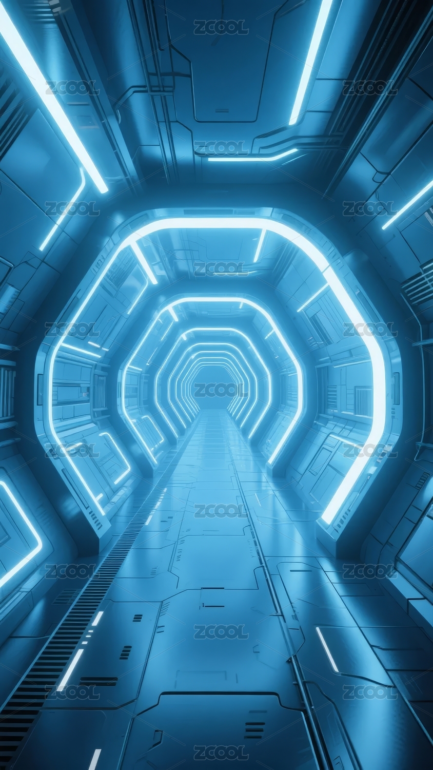 未来科技走廊,蓝色霓虹灯照明