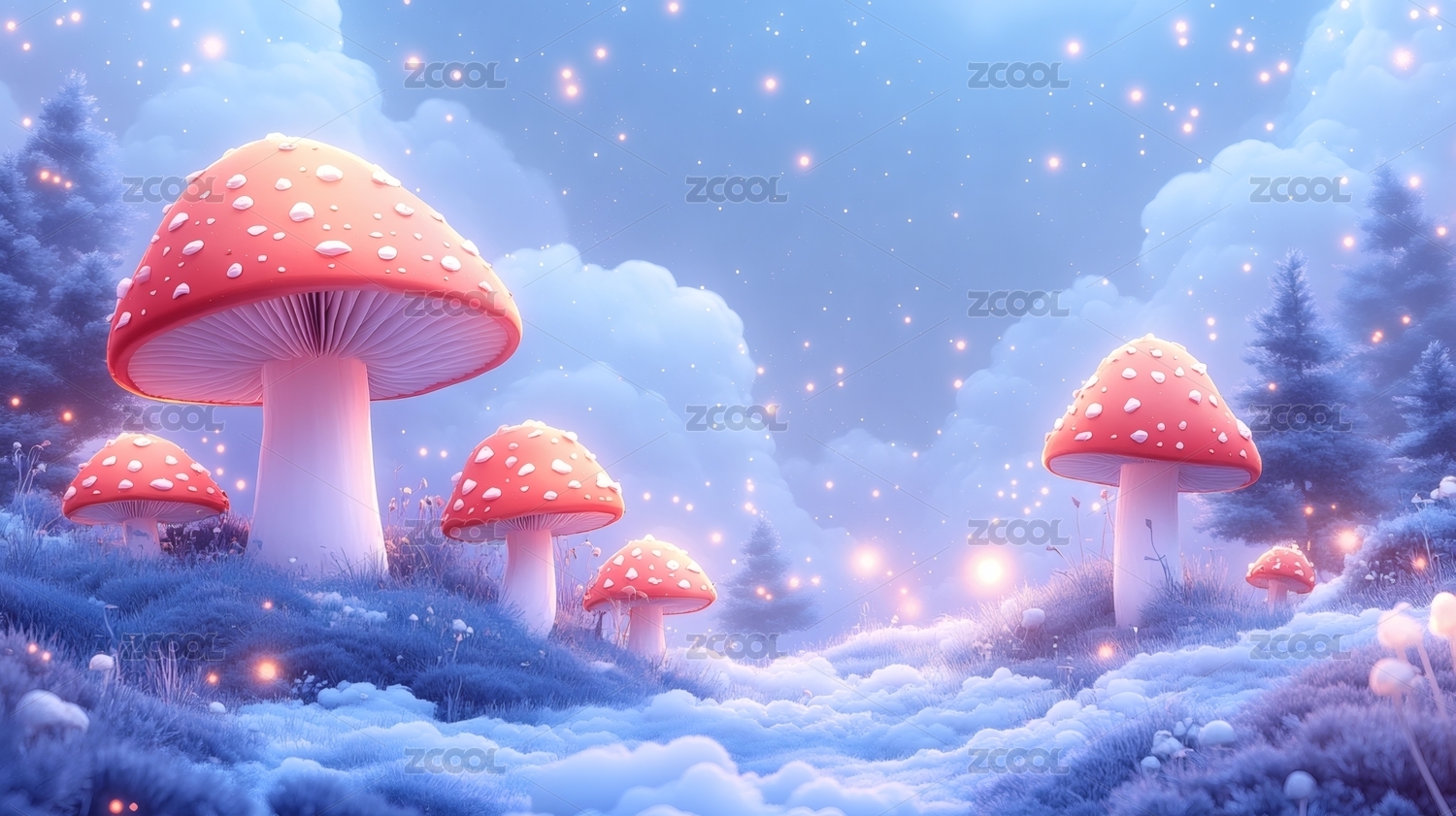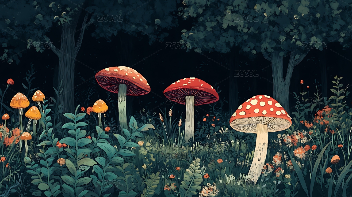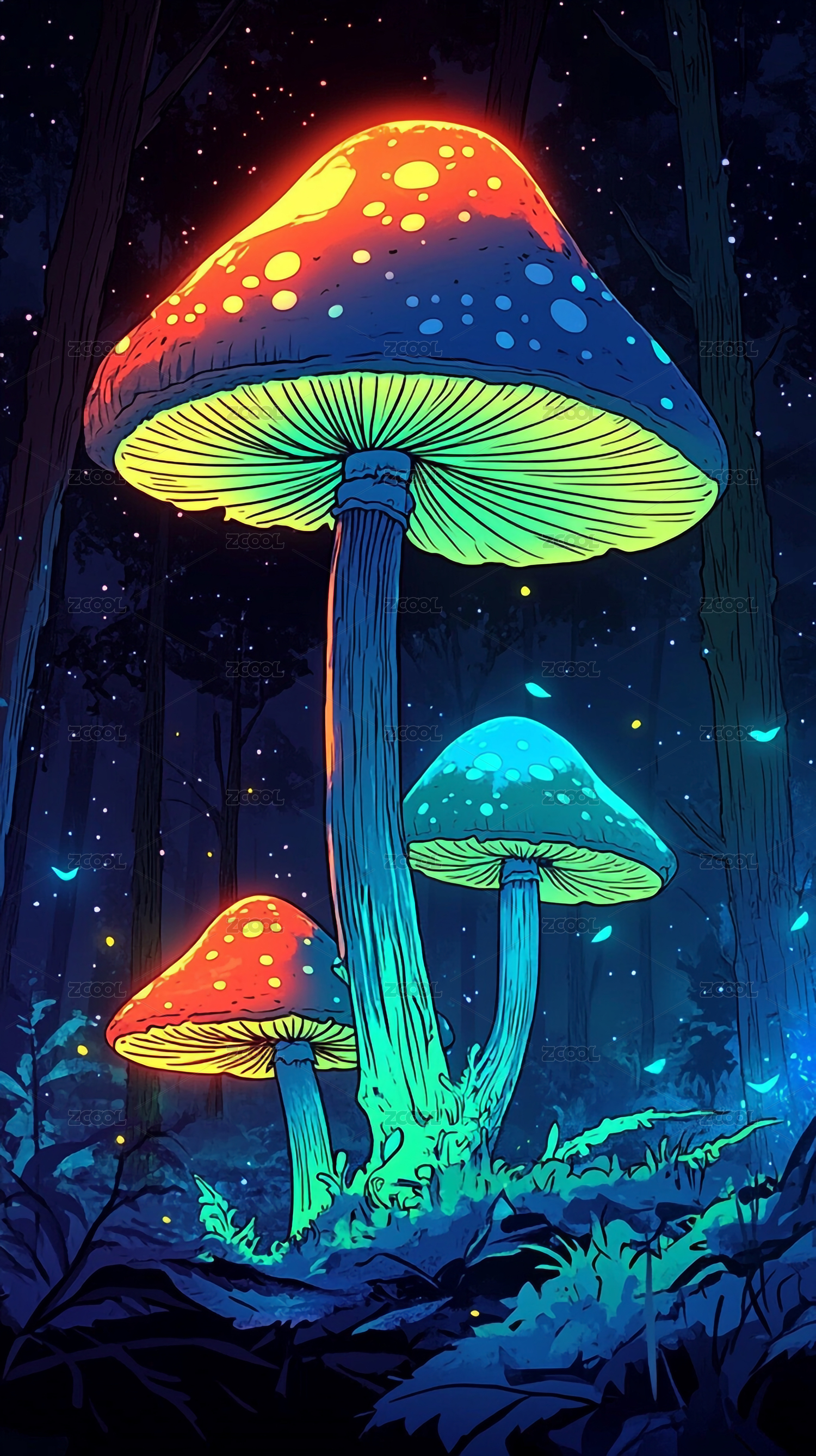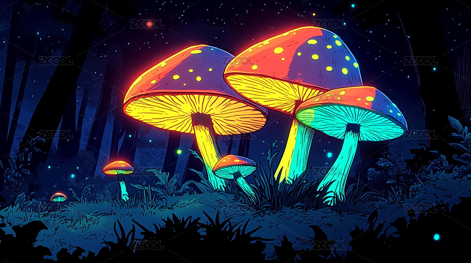 蘑菇,真菌,发光,魔法,浪漫,深夜,背景,装饰,菌盖,植物