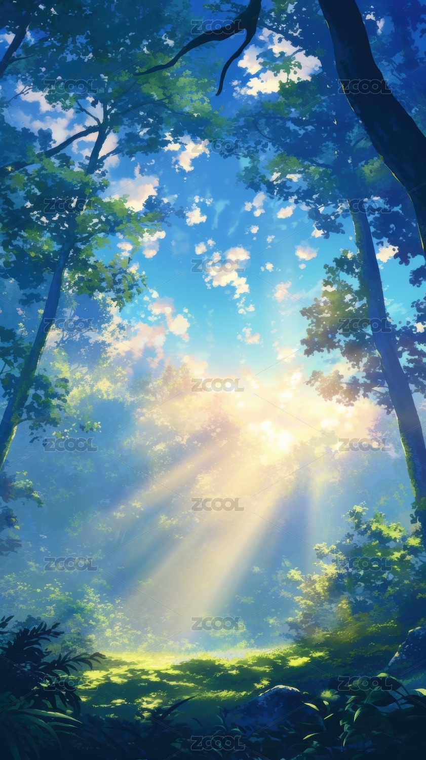 背景,氛围,树林,蓝天,白云,阳光,树叶,林间,仰视,光影