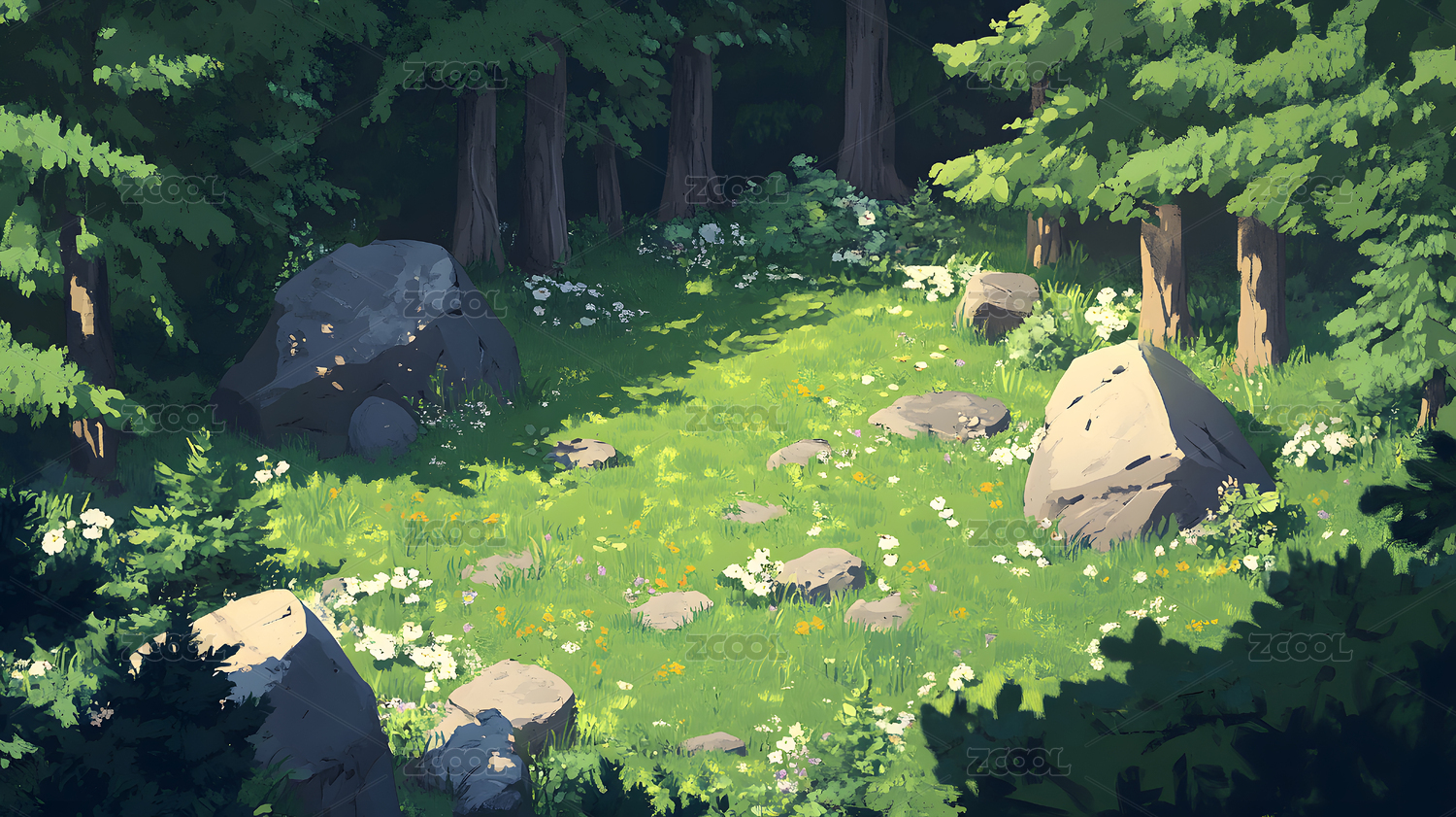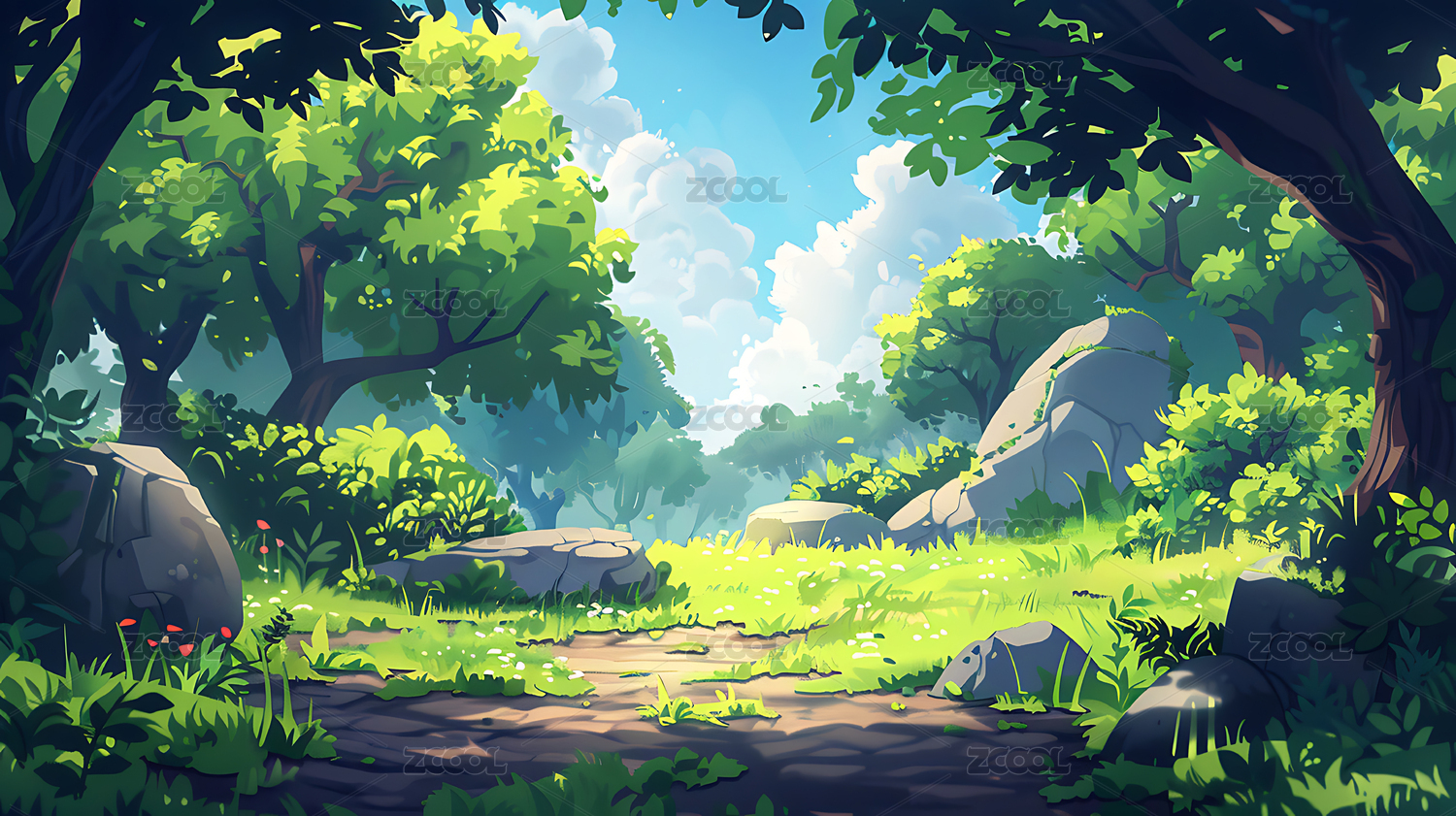 插画,卡通,壁纸,风景,自然,阳光,清新,森林,户外,背景图
