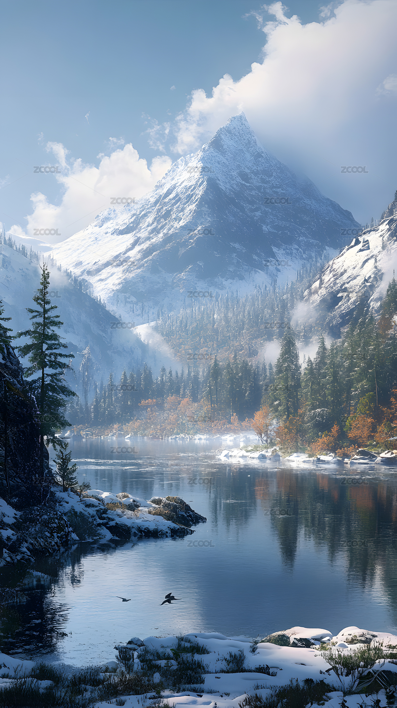 河流,山脉,风景,自然,户外,宁静,树木,森林,雪山,冬季
