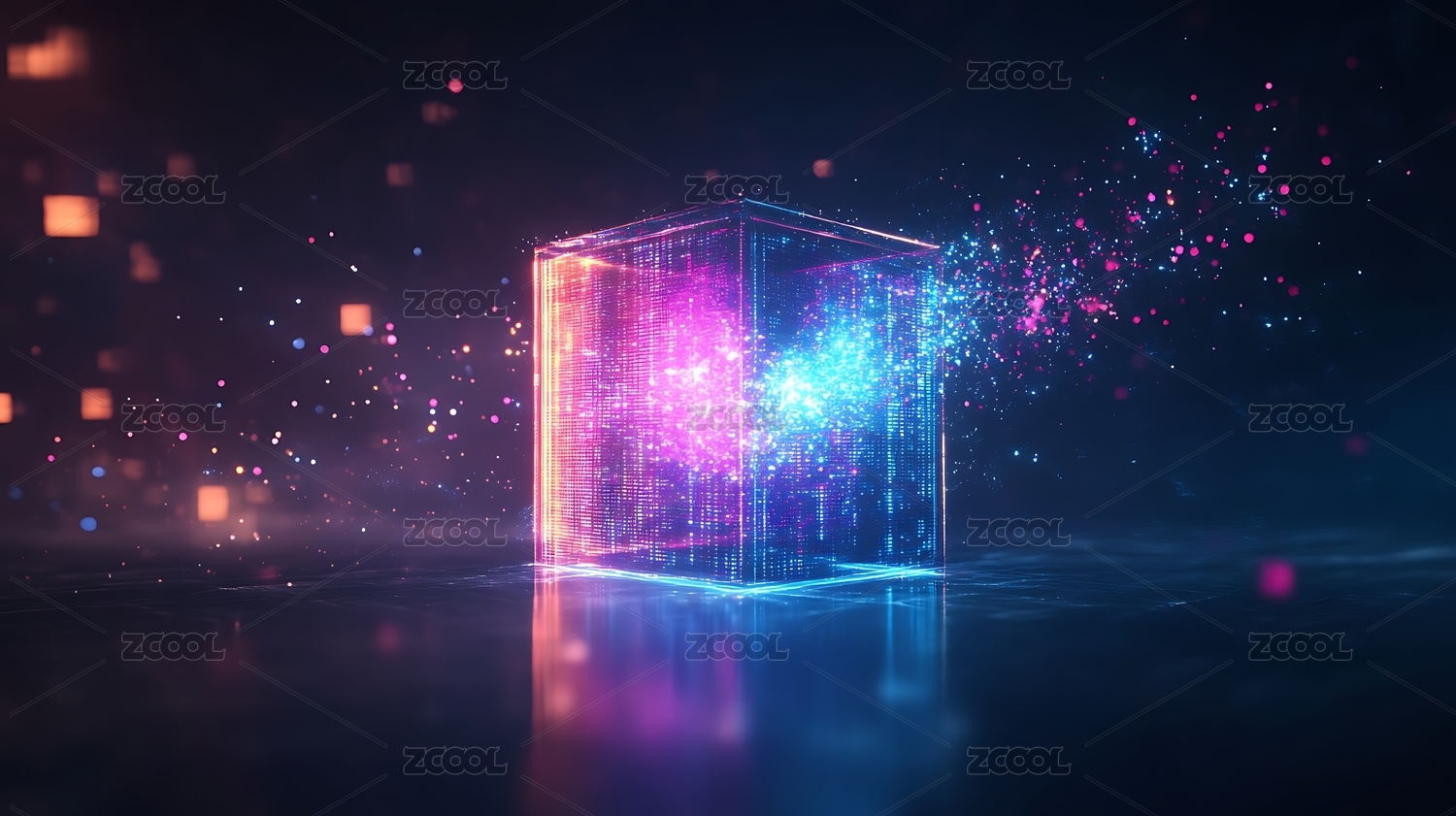 粉色,蓝色,科技,光线,未来感,粒子,立方体,数据,信息,网络