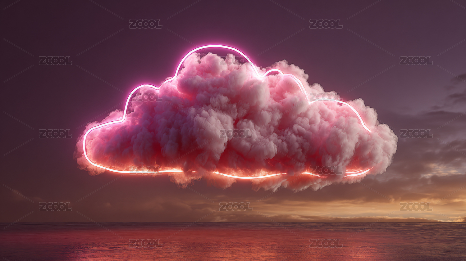 科技感,云团,粉色,霓虹灯,灯光,祥云,科技,未来,数据,传输