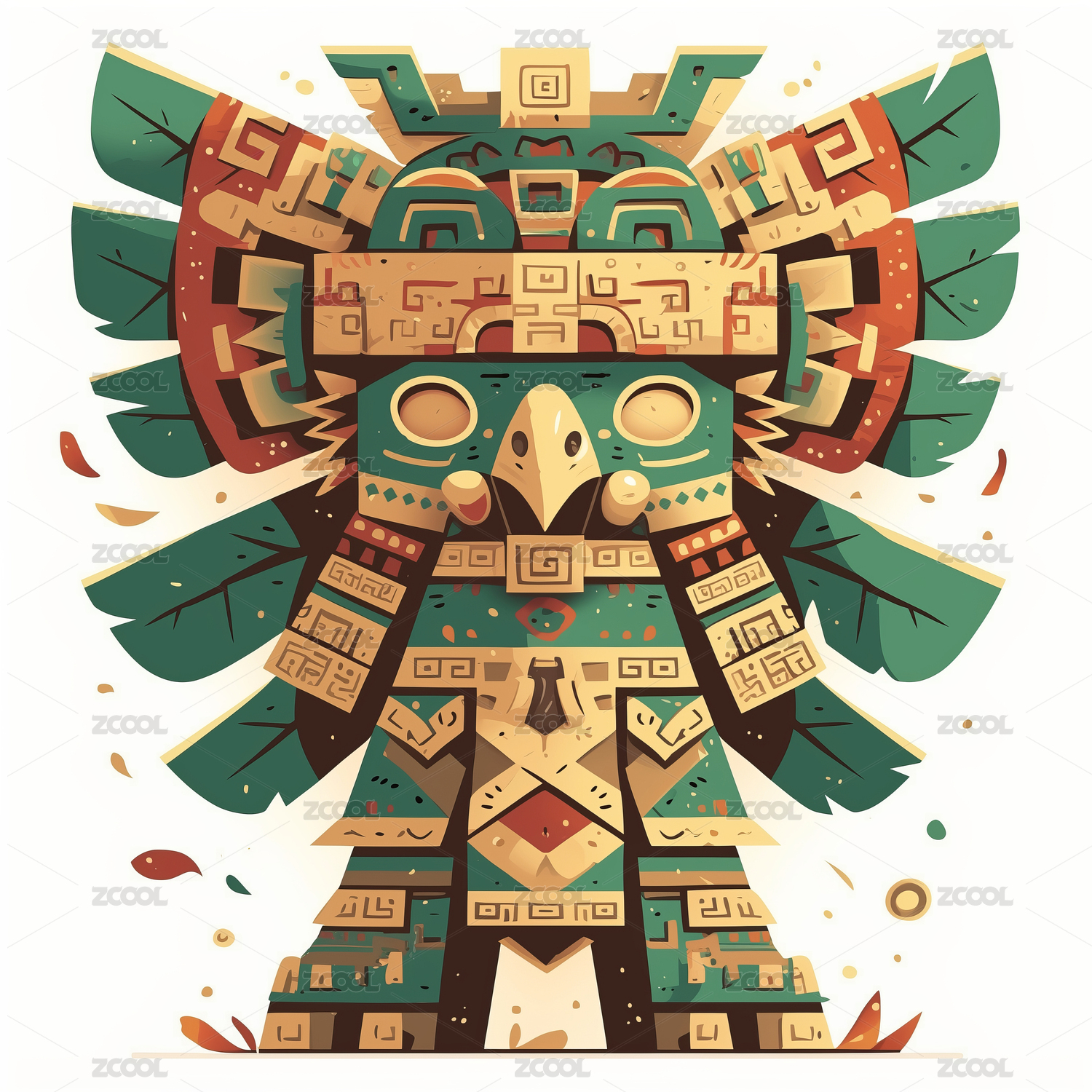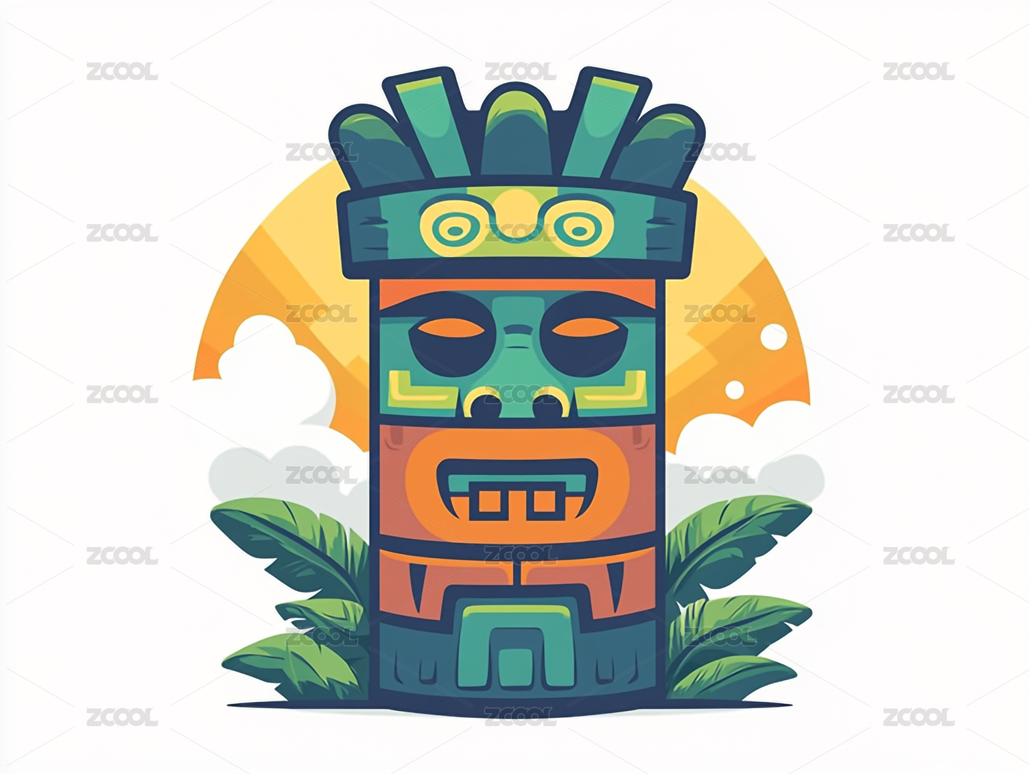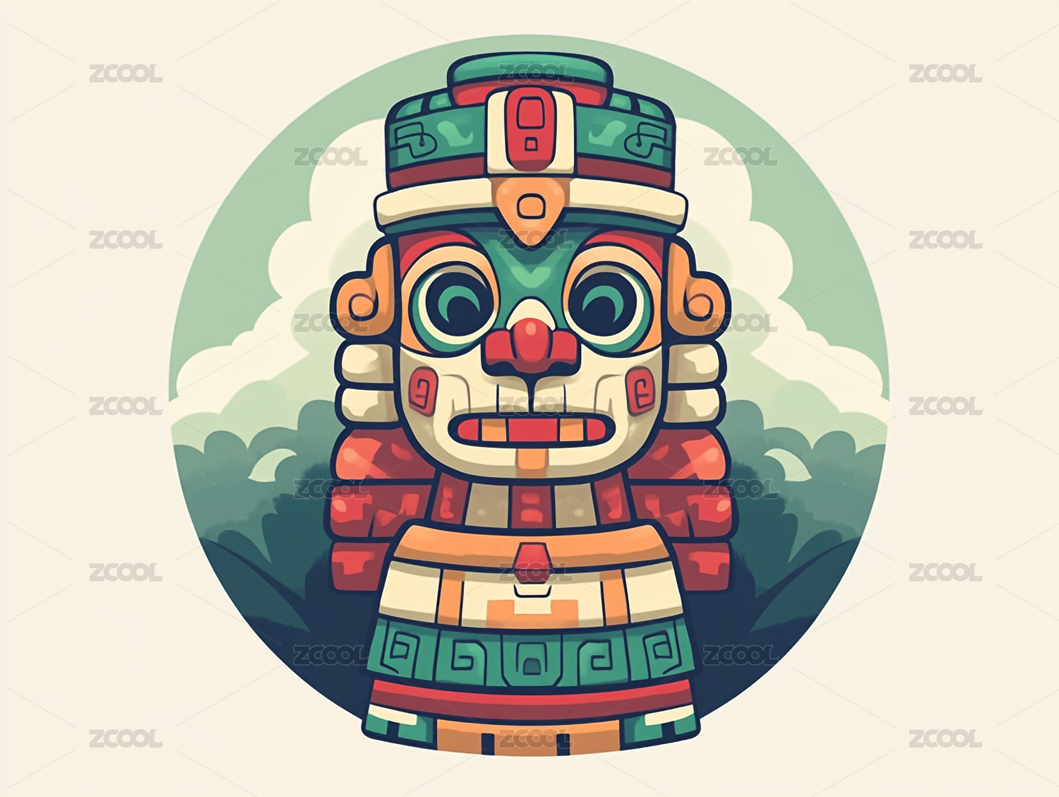 神像,图腾,卡通,面部,大眼,咧嘴,纹路,头饰,装饰,色彩