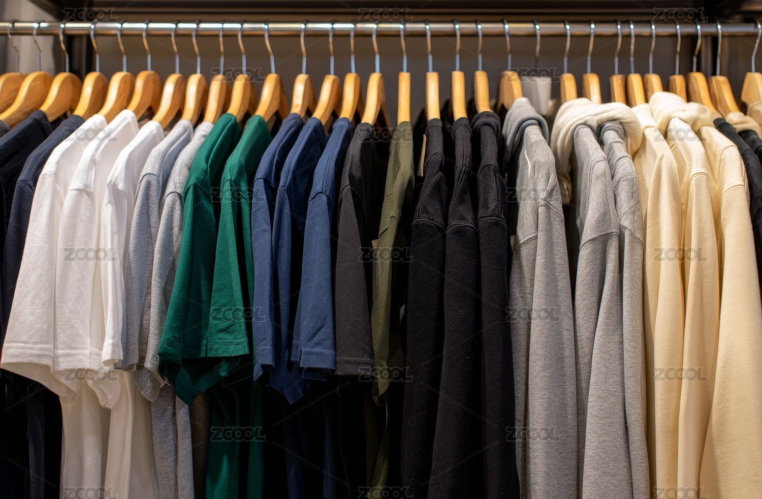 多色简约T恤整齐悬挂