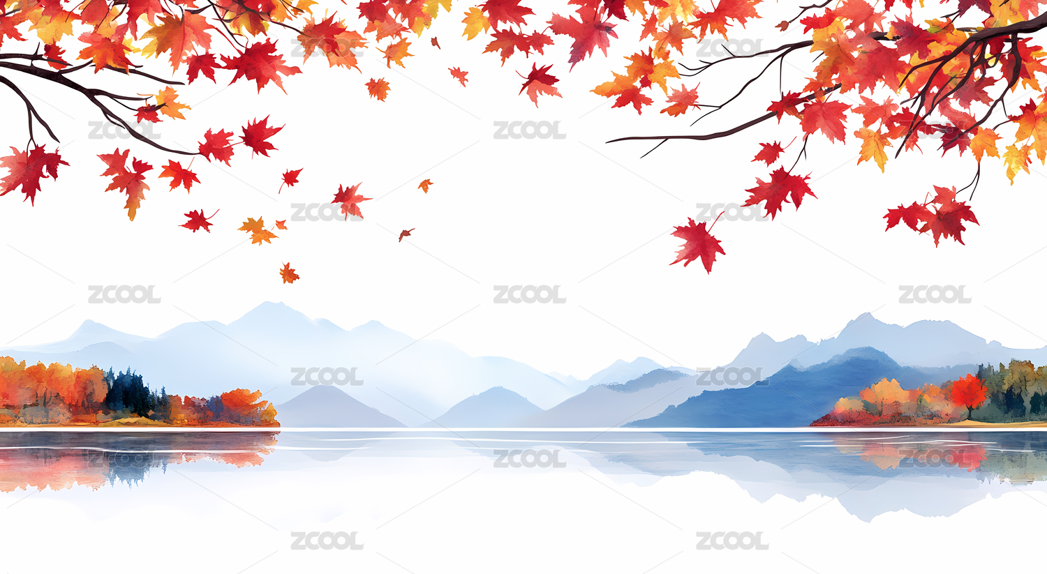红叶,秋景,飘雪,宁静,和谐,美丽,自然,季节,艺术,绘画