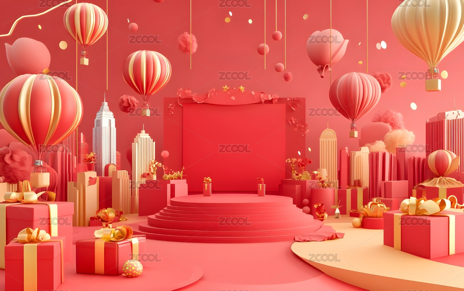 礼物,电商展台,3D渲染,卡通,艺术,气球,场景