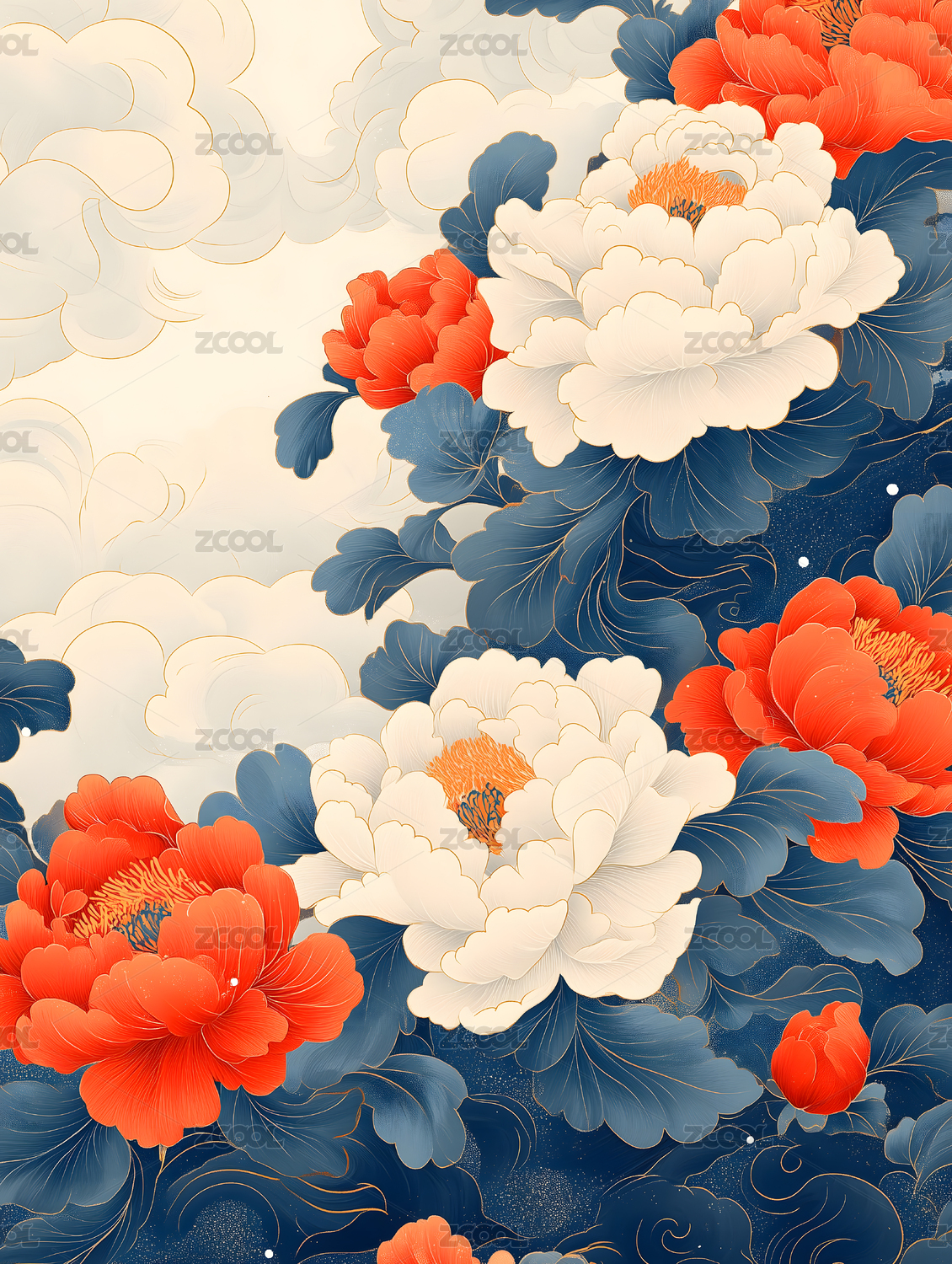 菊花,花瓣,背景,花蕊,红色,装饰,国风,金色,图案,枝叶