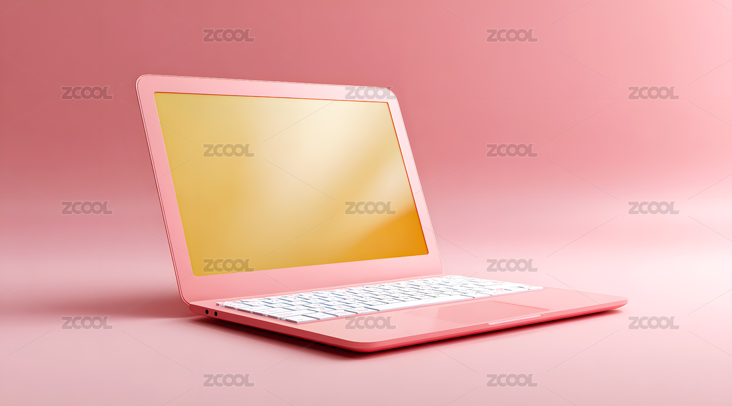 粉蓝渐变色的笔记本电脑图标,柔和色调