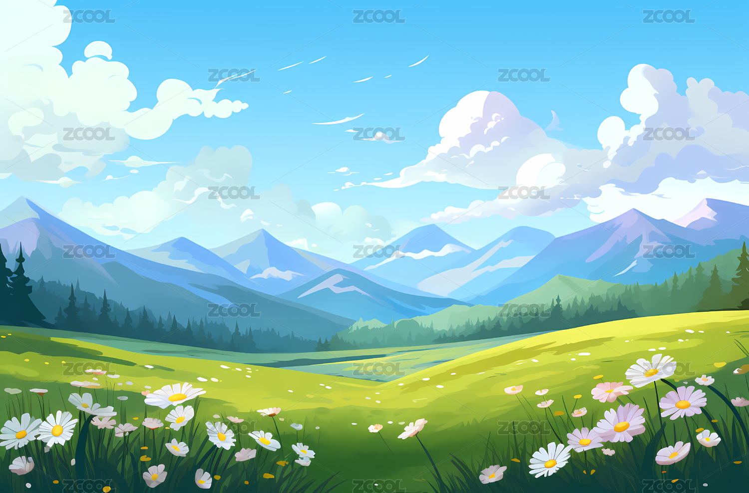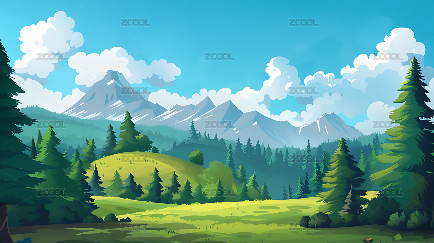 草地,插画,自然,风光,风景,户外,清新,森林,蓝天,树林
