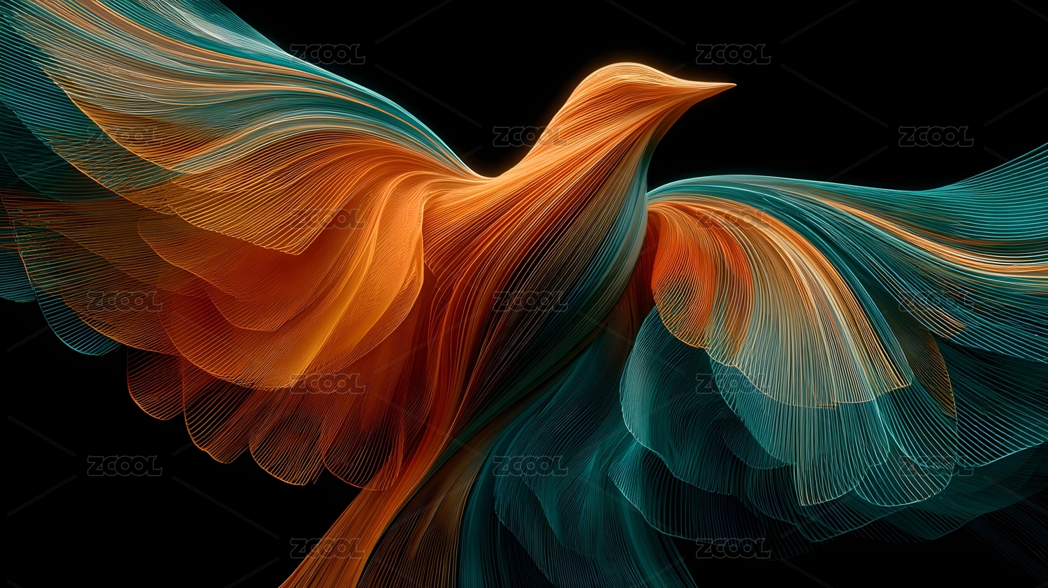 蓝橙色,翅膀,抽象,概念,展翅,高飞,数字,影像,夜空,光束