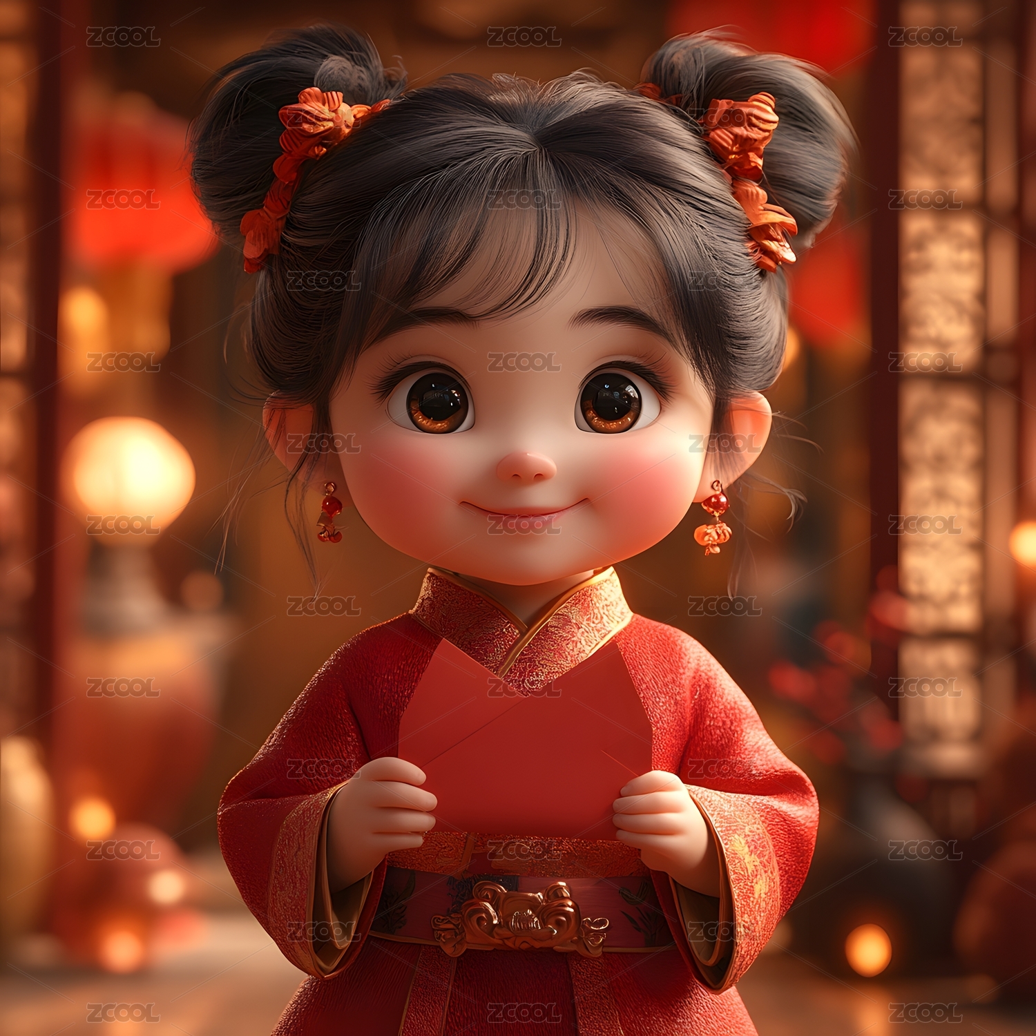 喜庆洋溢,可爱女孩手持红包迎接新年到来