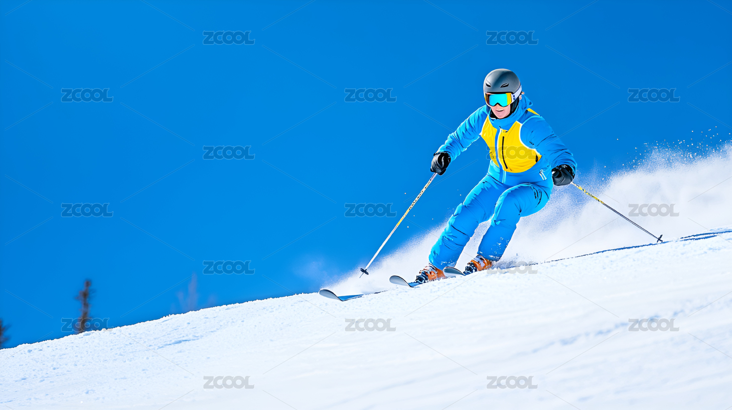 滑雪者在雪地中高速滑行