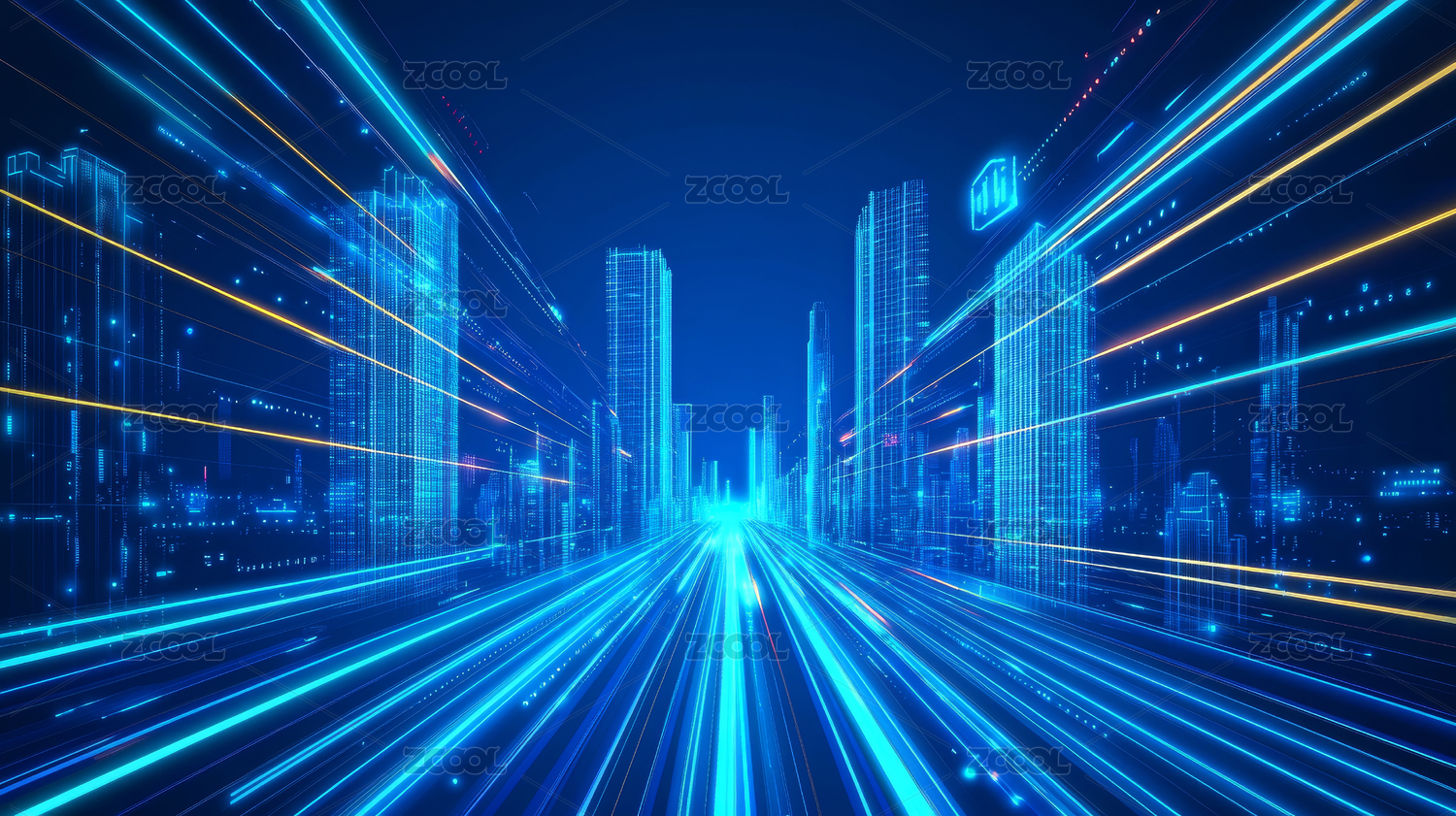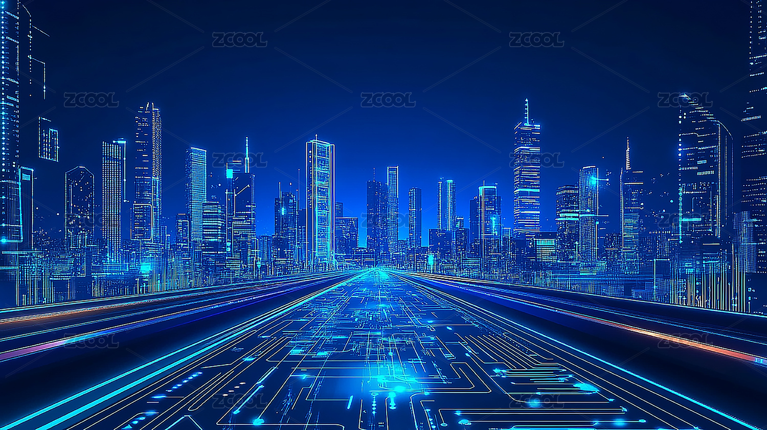 城市,高楼,夜景,蓝色,线条,轮廓,道路,网格,现代,灯光