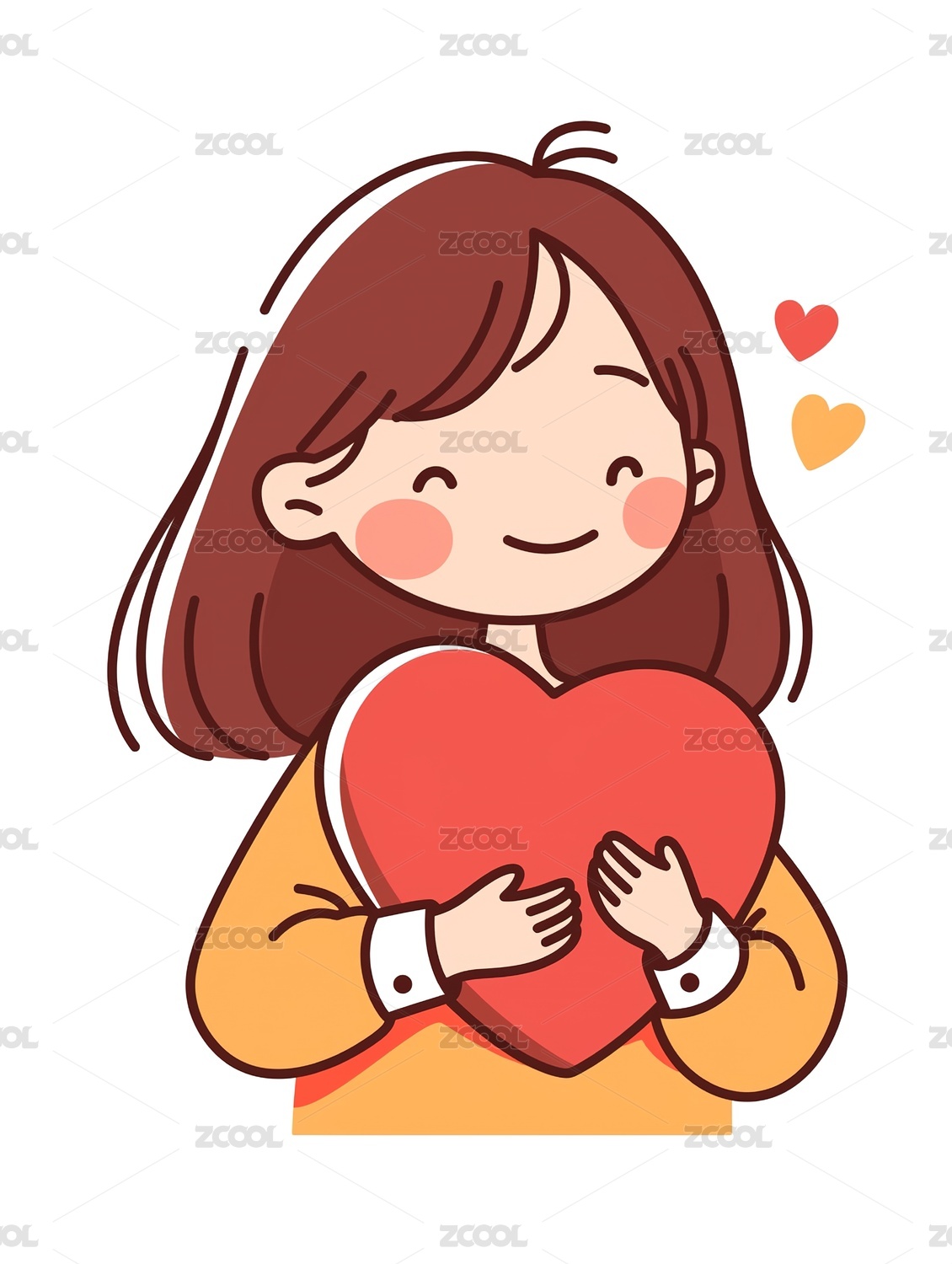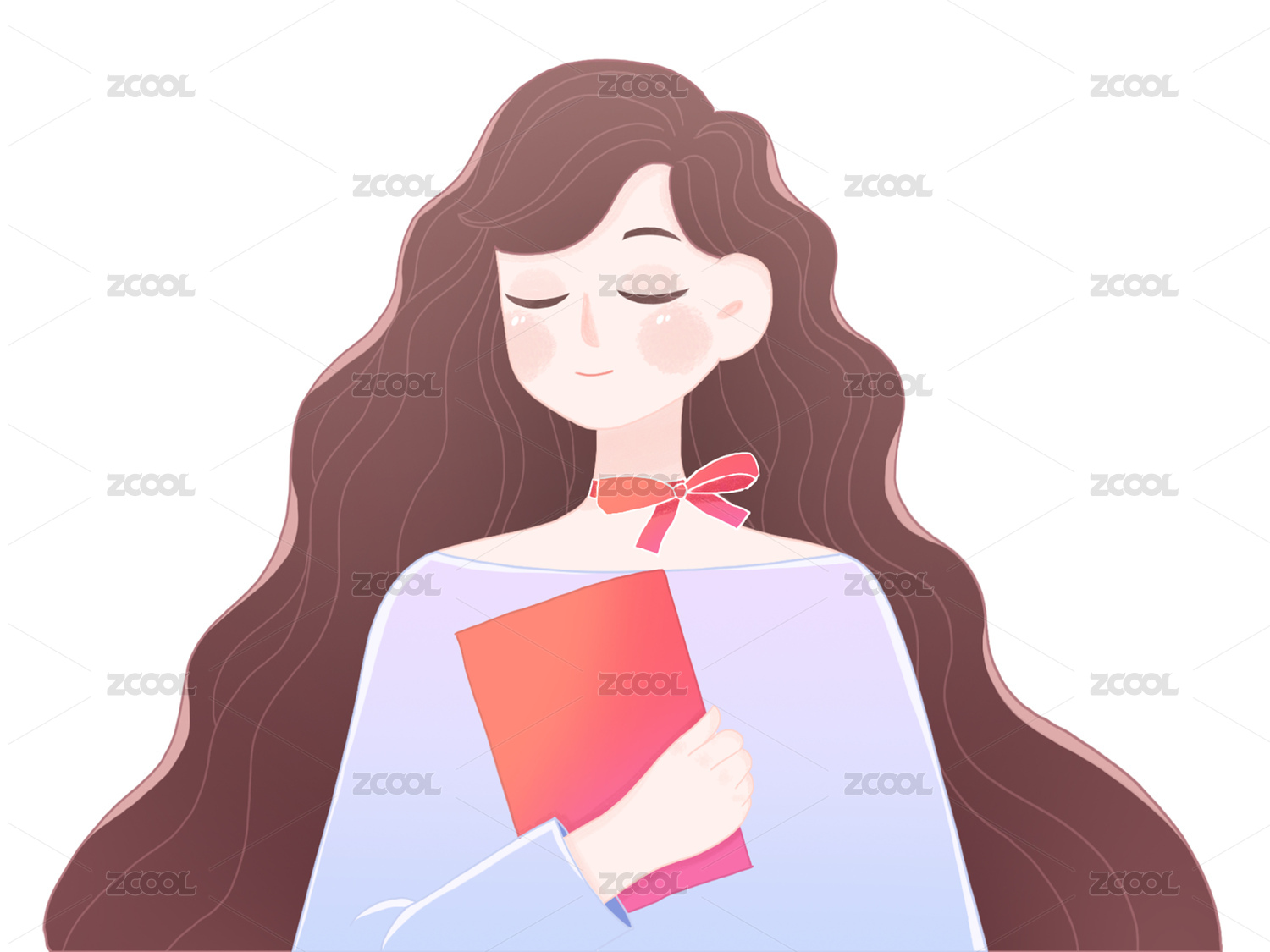 清新明亮白底胸前抱着书的亚洲女孩插画绘画
