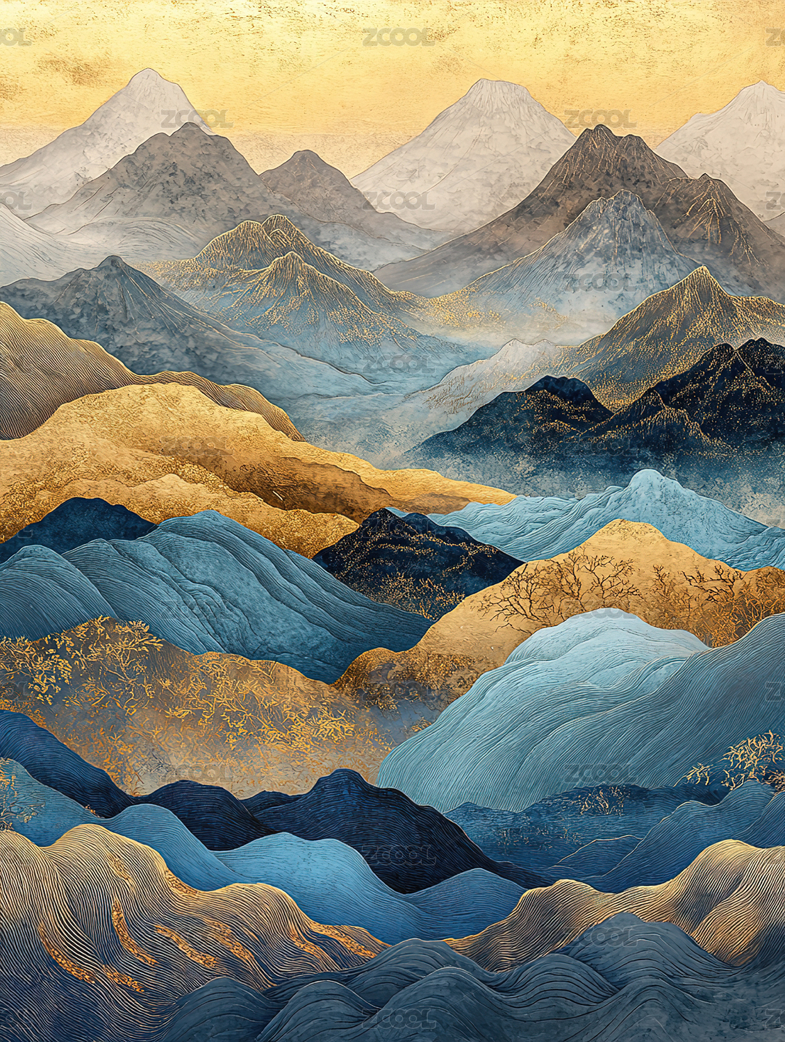 水墨金箔山峦图
