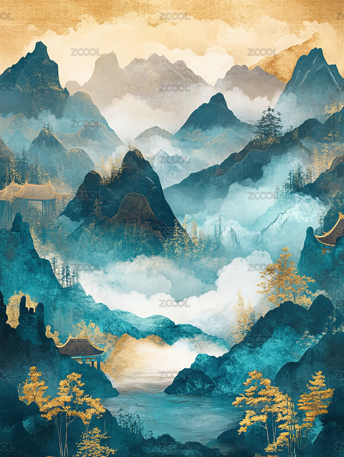 鎏金中国风山水风景装饰画