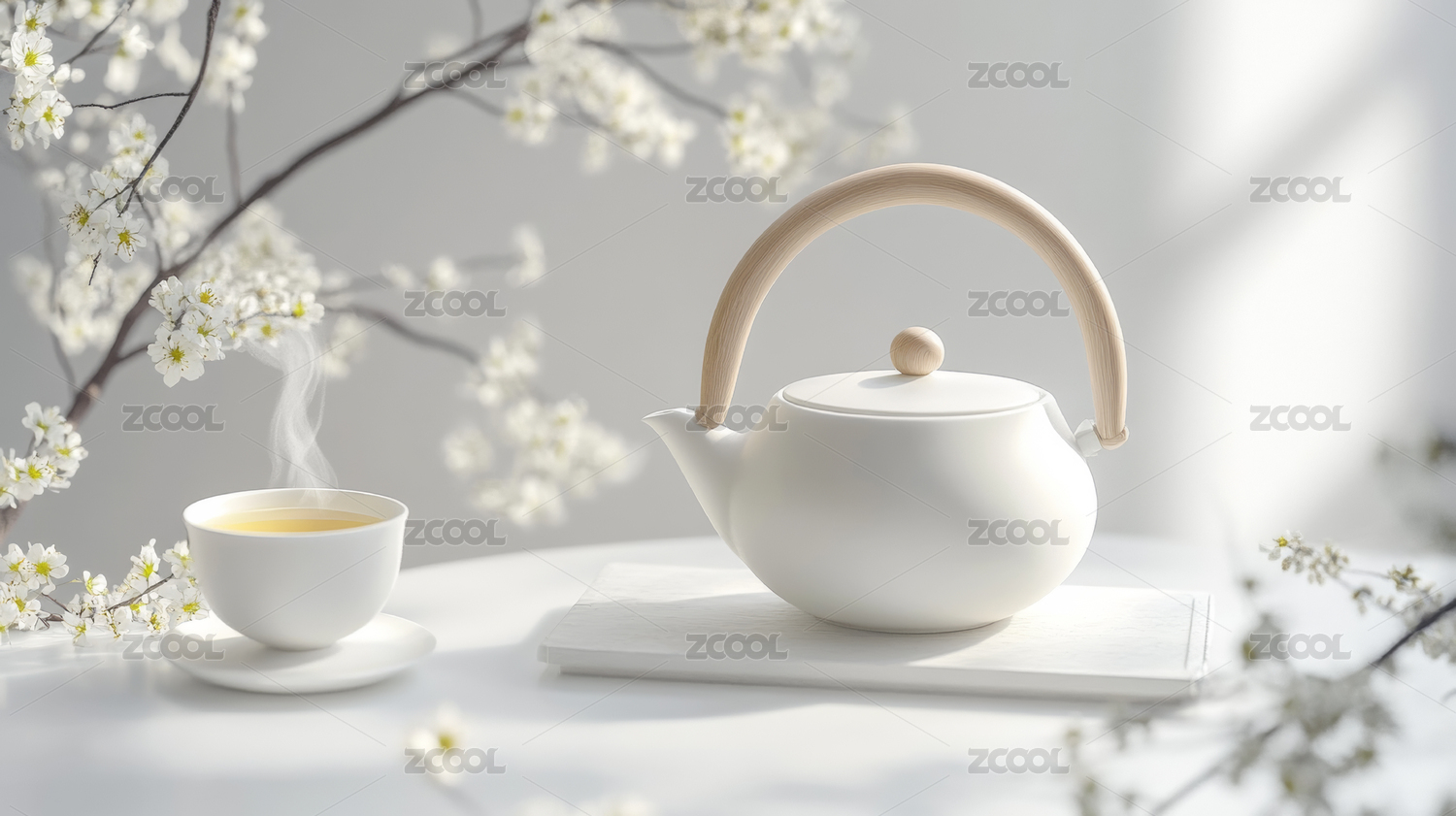 陶瓷茶壶与茶杯温暖茶艺场景.