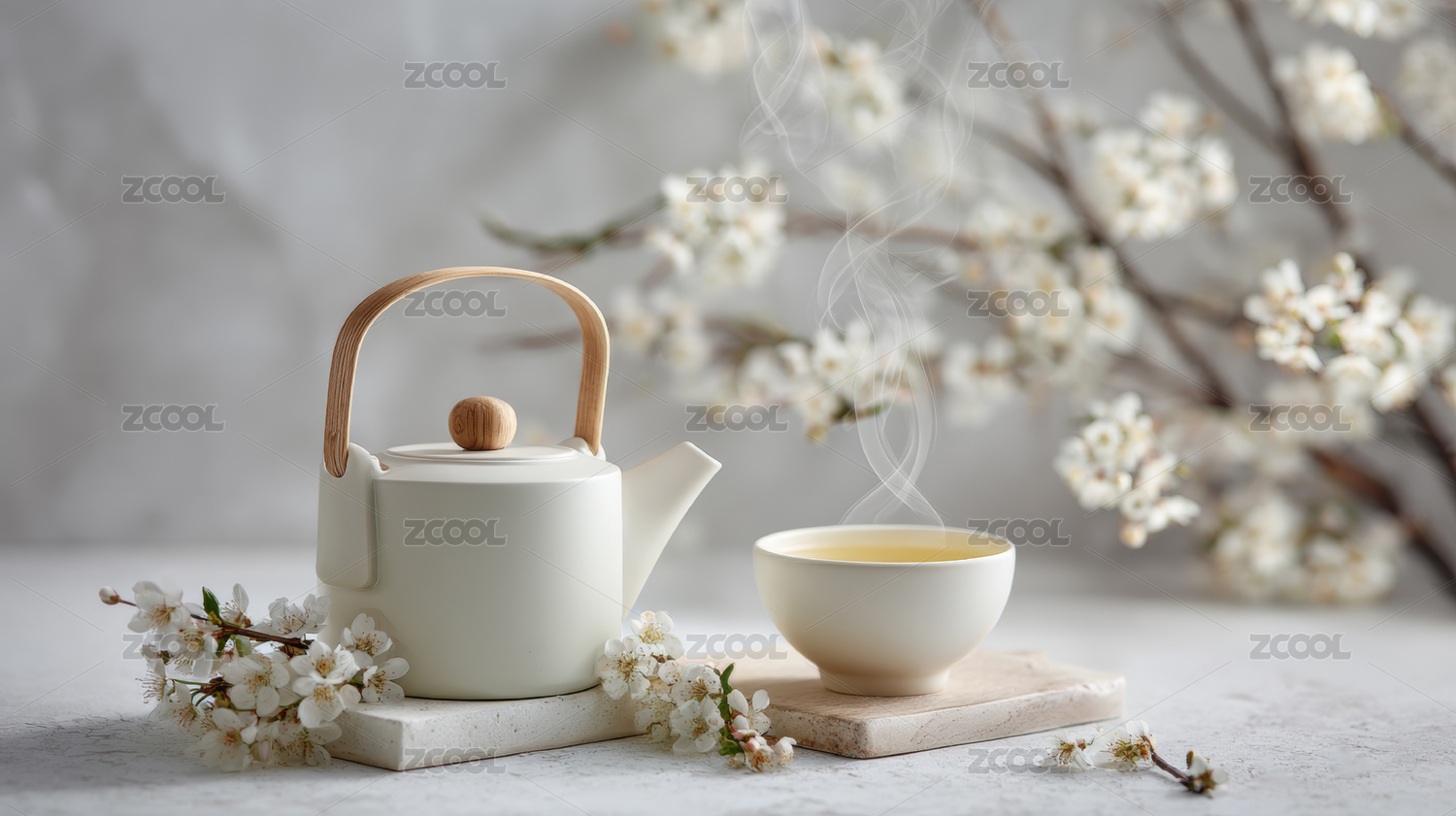 春天,花朵,树枝,自然,茶,茶壶,叶子,蒸汽,清新,茶杯