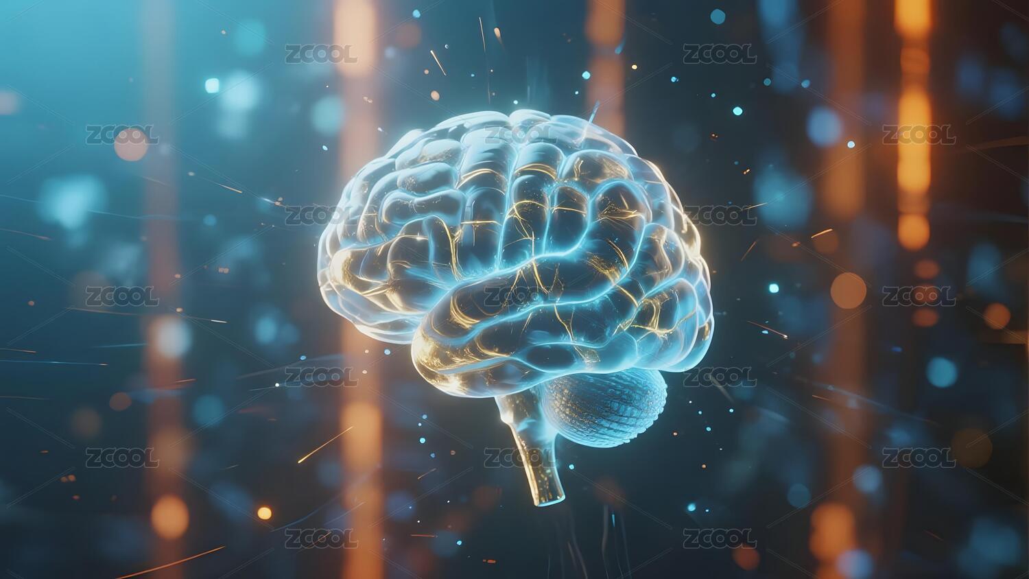 橙色,蓝色,科技感,光效,未来感,科幻,光点,动态,彩色,大脑