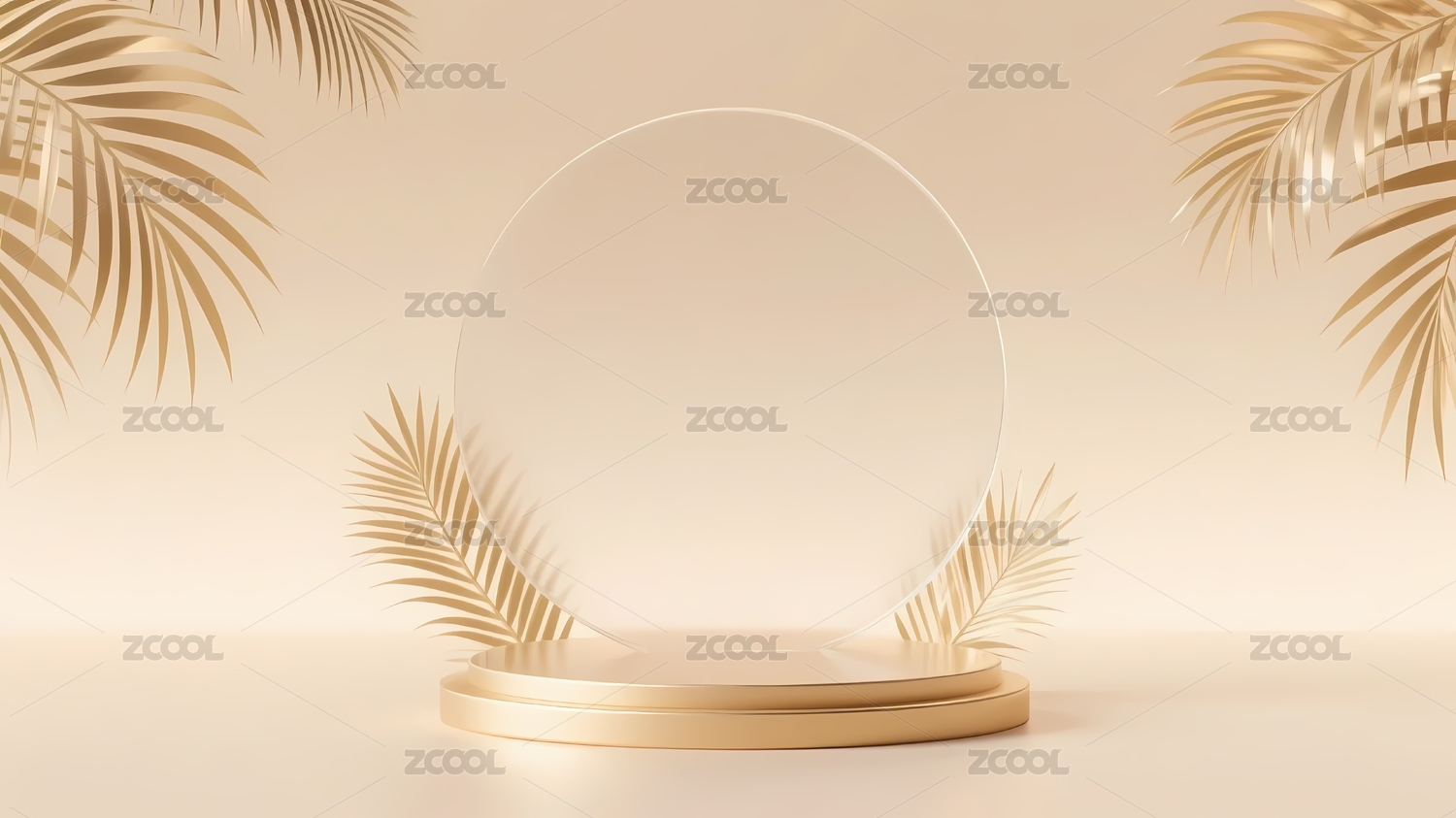 金色圆形讲台与棕榈叶