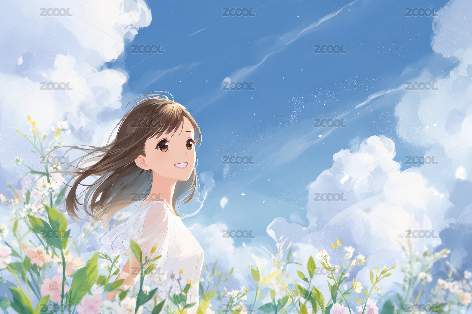春风轻拂花间的少女画卷