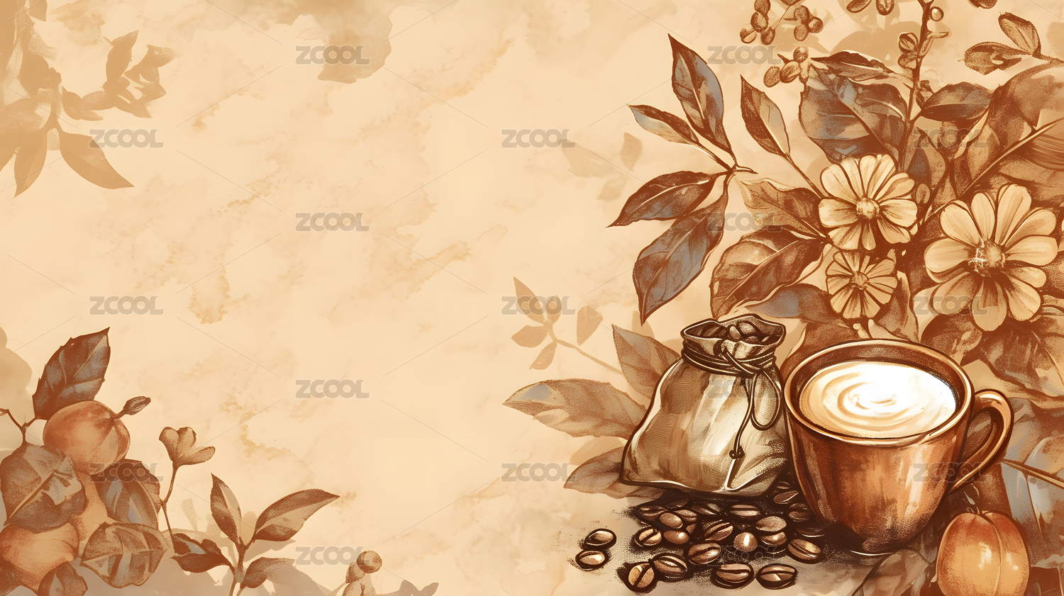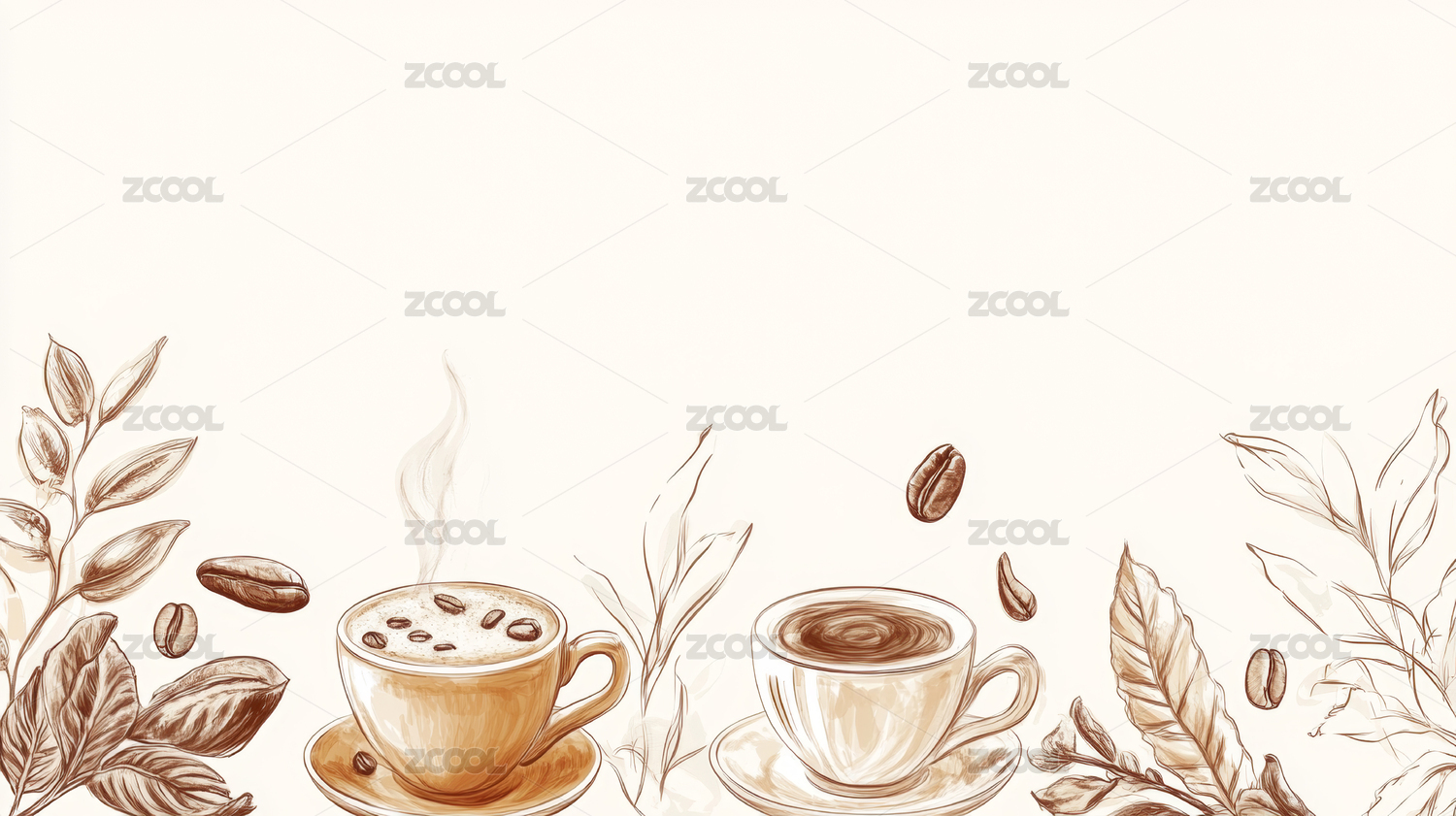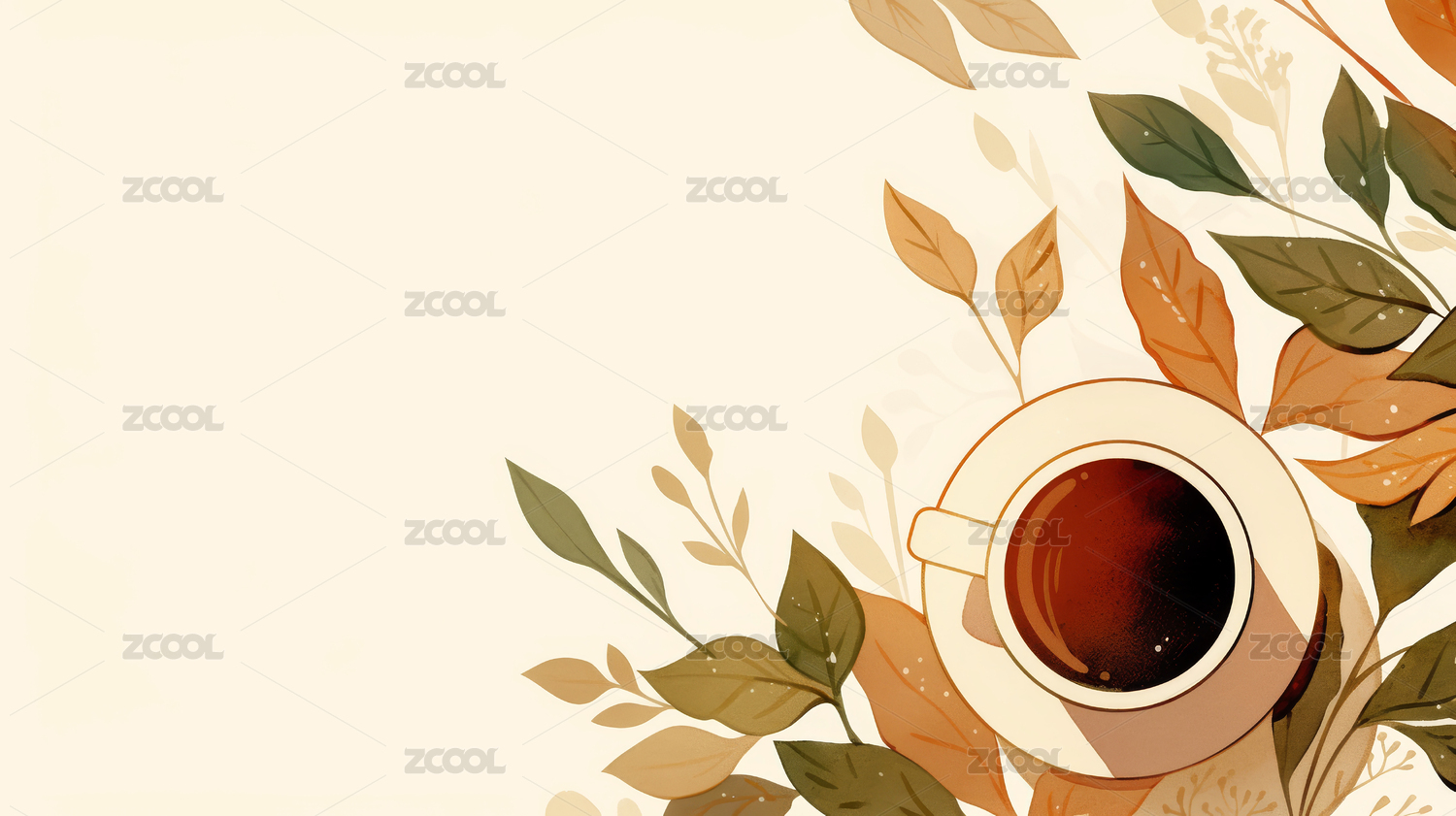 桌面上杯中的咖啡奶茶3D卡通食品插画
