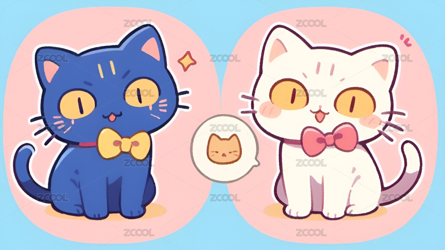 卡通,花朵,围巾,草地,可爱,小猫,情侣