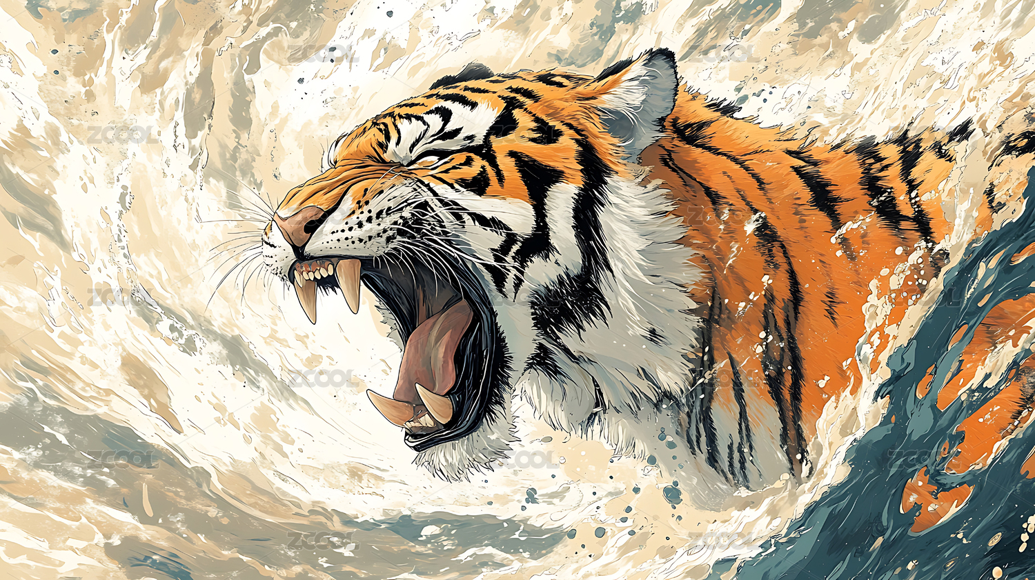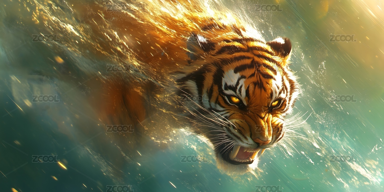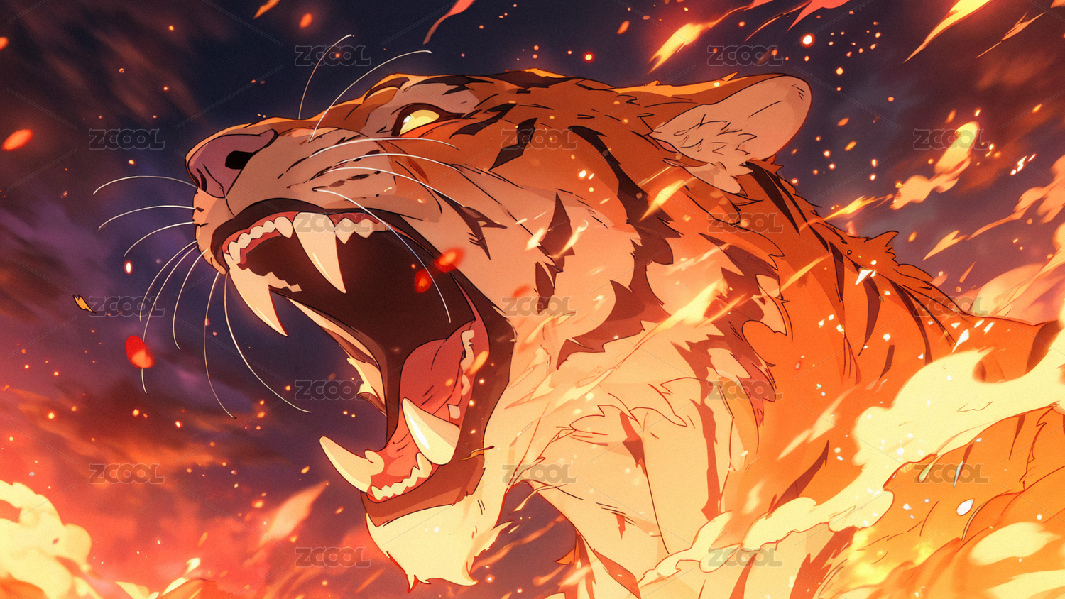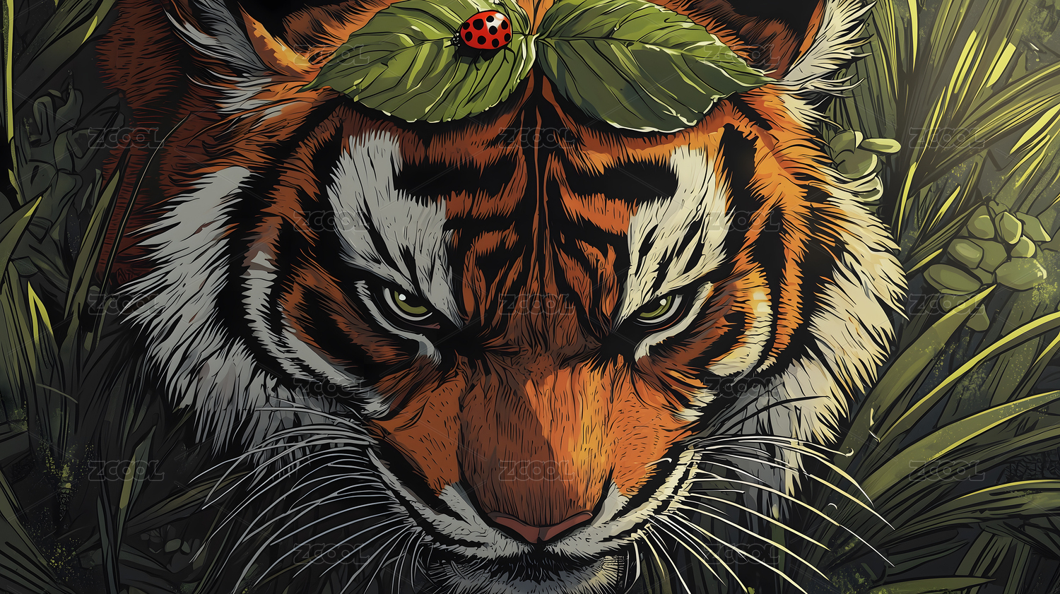 老虎,丛林,动物,卡通,凝视,自然,生物,绿色,橙色,条纹