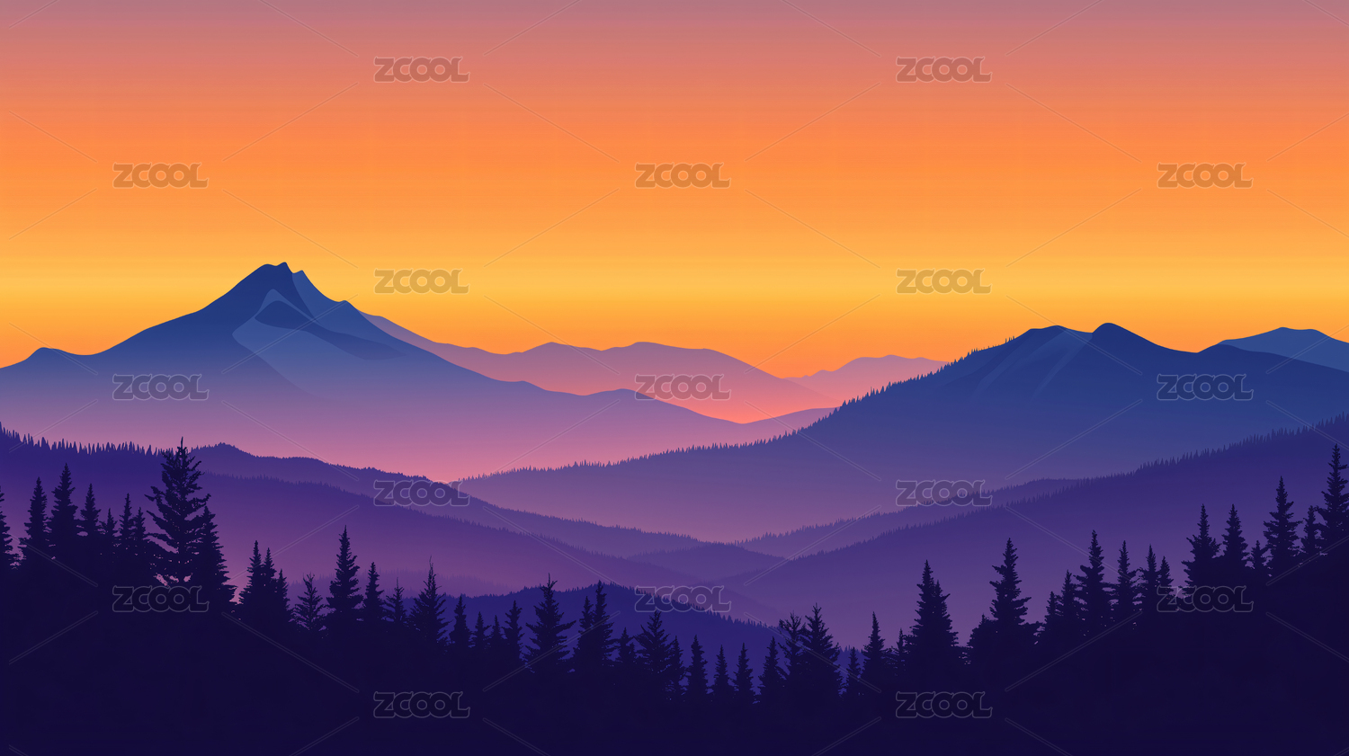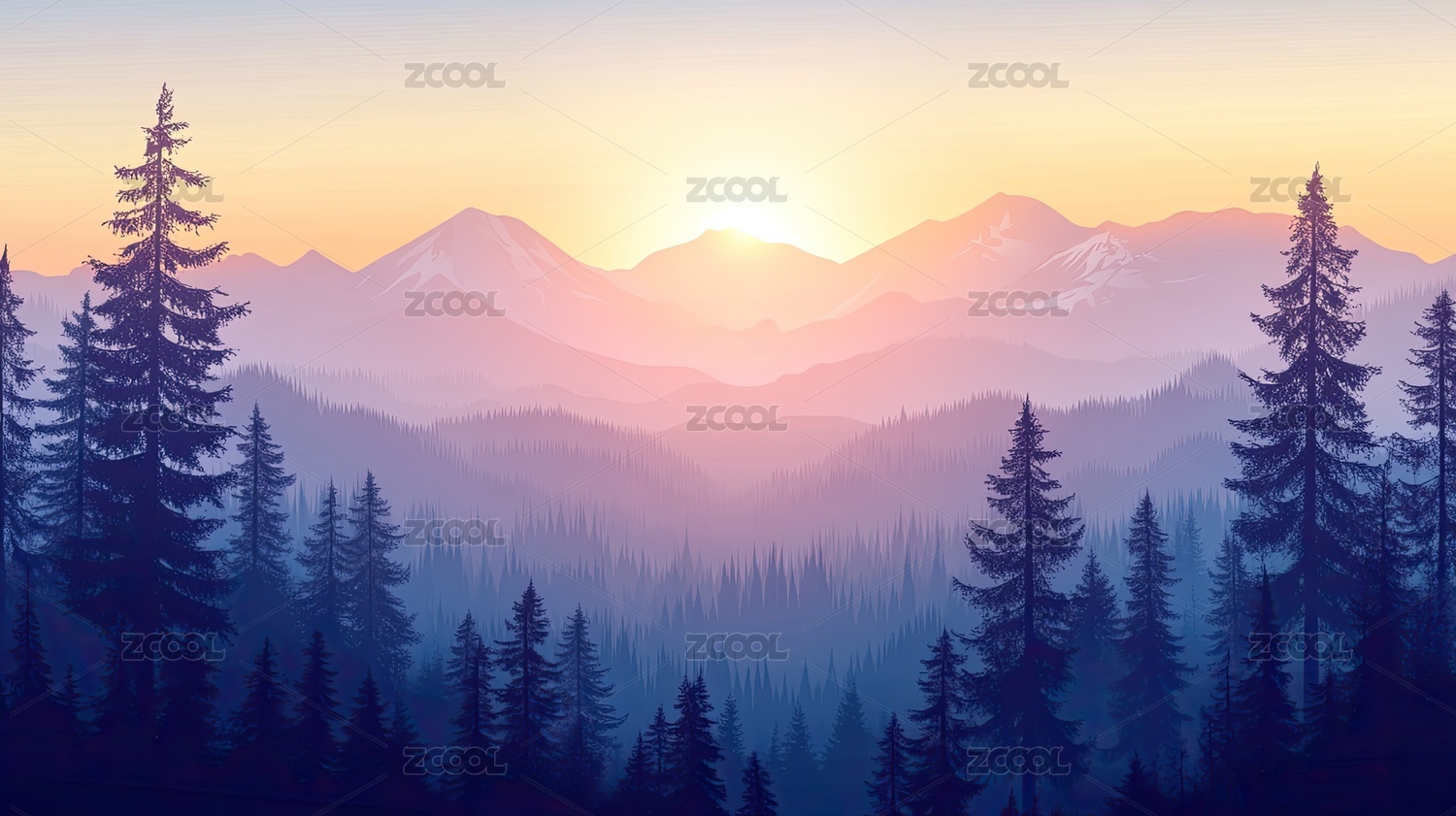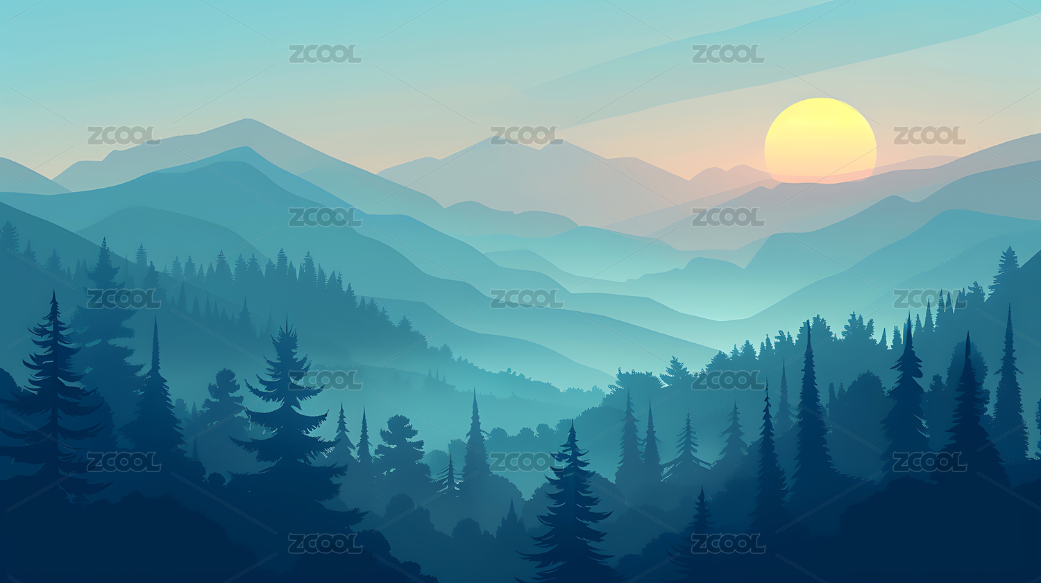 自然,宁静,插画,背景,艺术,唯美,设计,创意,山脉,治愈