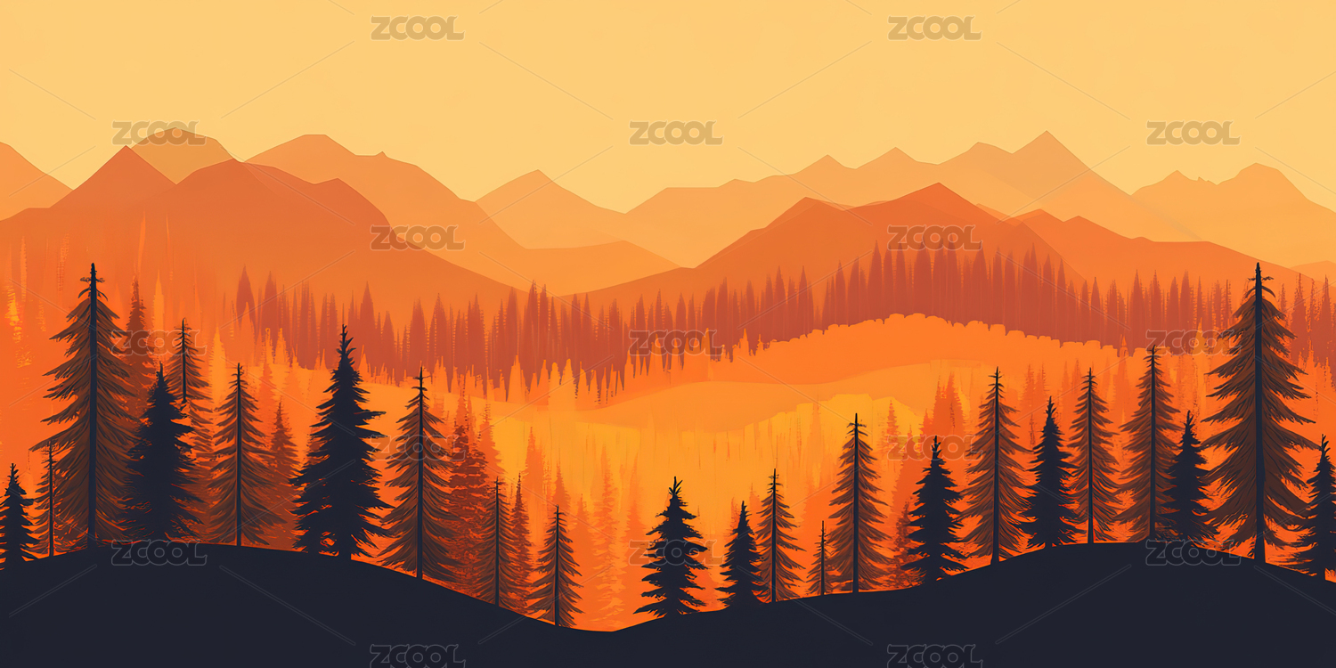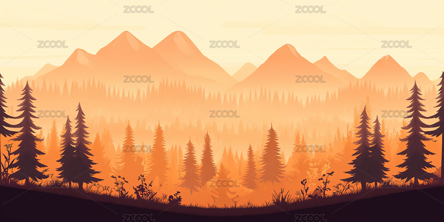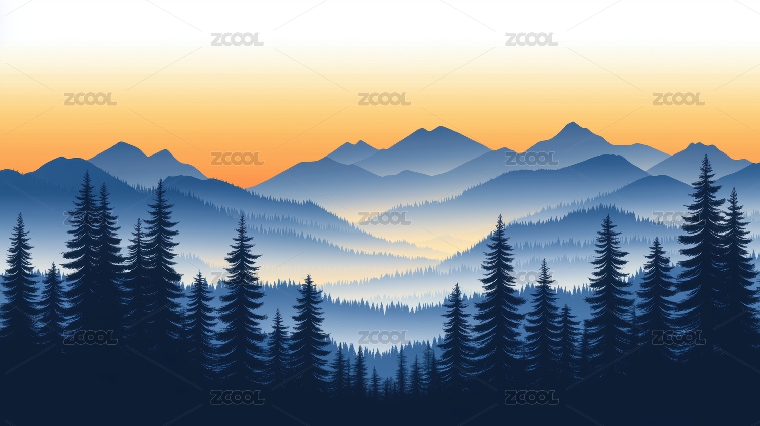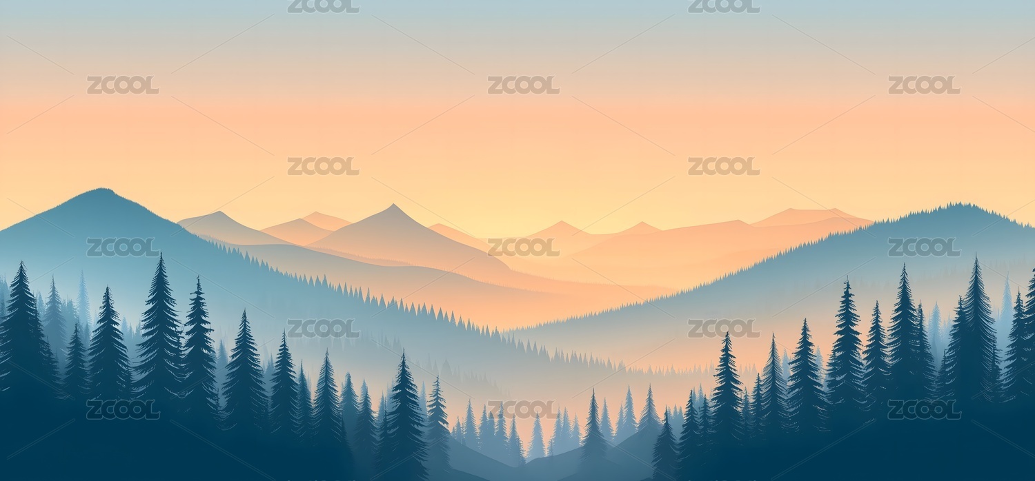 自然,宁静,插画,背景,艺术,唯美,设计,创意,山脉,治愈