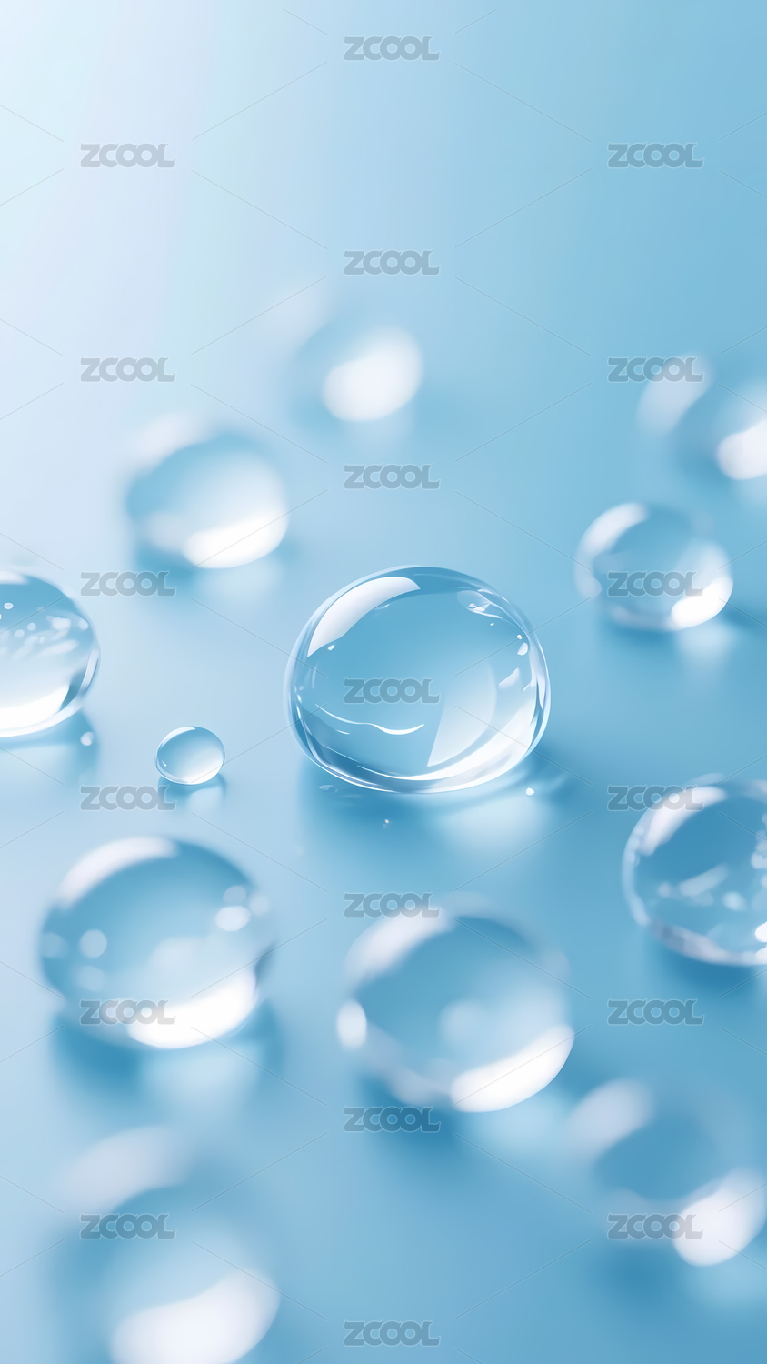 3D水珠蓝色透明质感背景素材