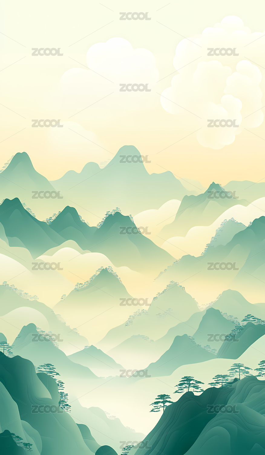 艺术,树木,宁静,唯美,远山,山峦,山峰,风景,祥和,山水画