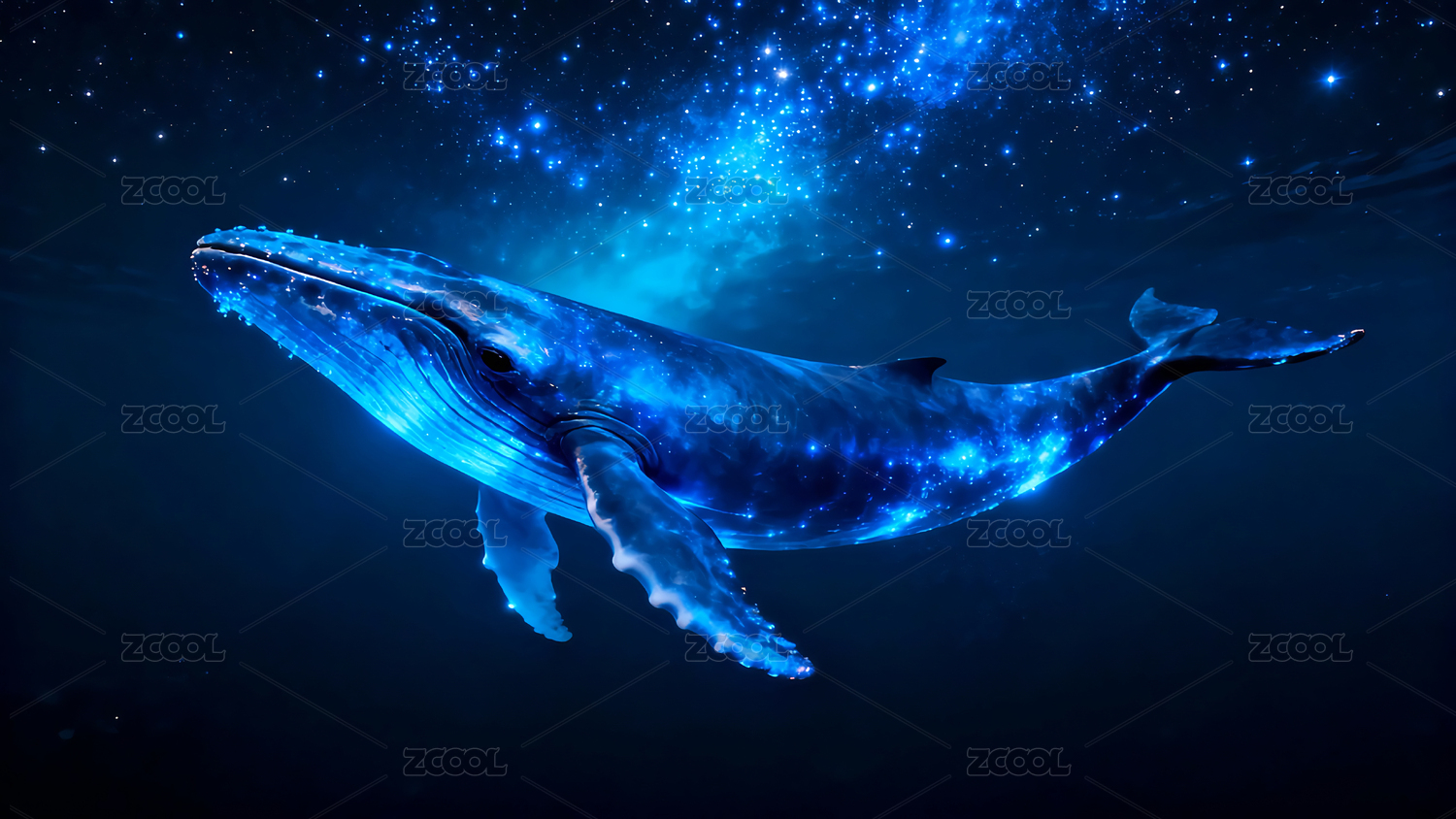科技感鲸鱼徜徉在数据深海中的极简插画